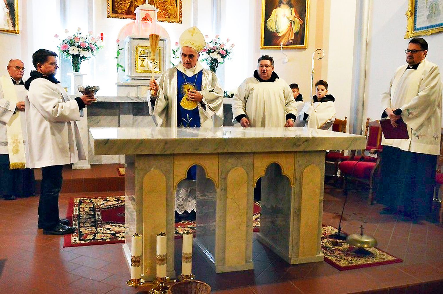 Imieniny parafii pw. Matki Boskiej Ostrobramskiej w Jeżycach były okazją do poświęcenia nowo wybudowanego, marmurowego ołtarza. Pomysł i rozpoczęcie wstępnych prac, opracowanie projektu rozpoczęły się na początku 2018r. Ołtarz soborowy i ołtarz główny dzięki szczodrości wiernych i sprawnej pracy firmy z Elbląga, był już gotowy na poprzedni odpust. Kolejnym etapem kończącym cały proces budowy i zalegalizowania nowego ołtarza jest ceremonialne jego poświęcenie. Ksiądz proboszcz Grzegorz Malinowski i członkowie Rady Parafialnej postanowili, że dobrą okazją będą kolejne imieniny parafii. I tak 16-go listopada tego roku ksiądz biskup Krzysztof Włodarczyk celebrował mszę świętą, podczas której poświęcił ołtarz soborowy i ołtarz główny. Była to piękna i dostojna ceremonia, którą licznie zebrani wierni przeżyli w skupieniu i radości. KJ