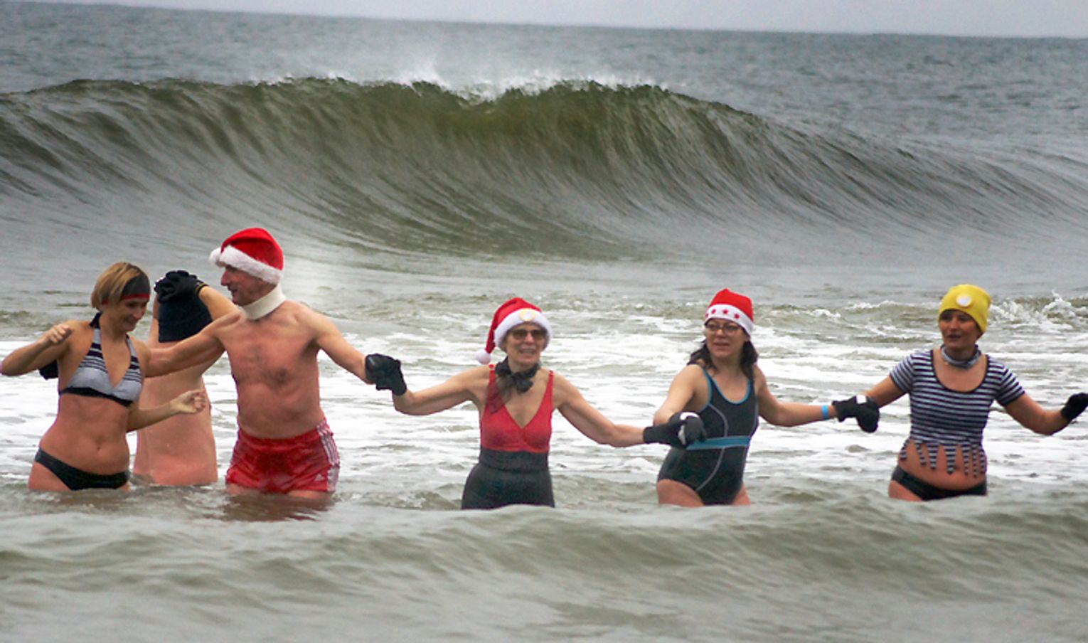 Po krótkiej rozgrzewce, w czasie której odśpiewano sto lat Lindzie i Tomaszowi (dzień wcześniej wzięli ślub), morsy weszły do wody.