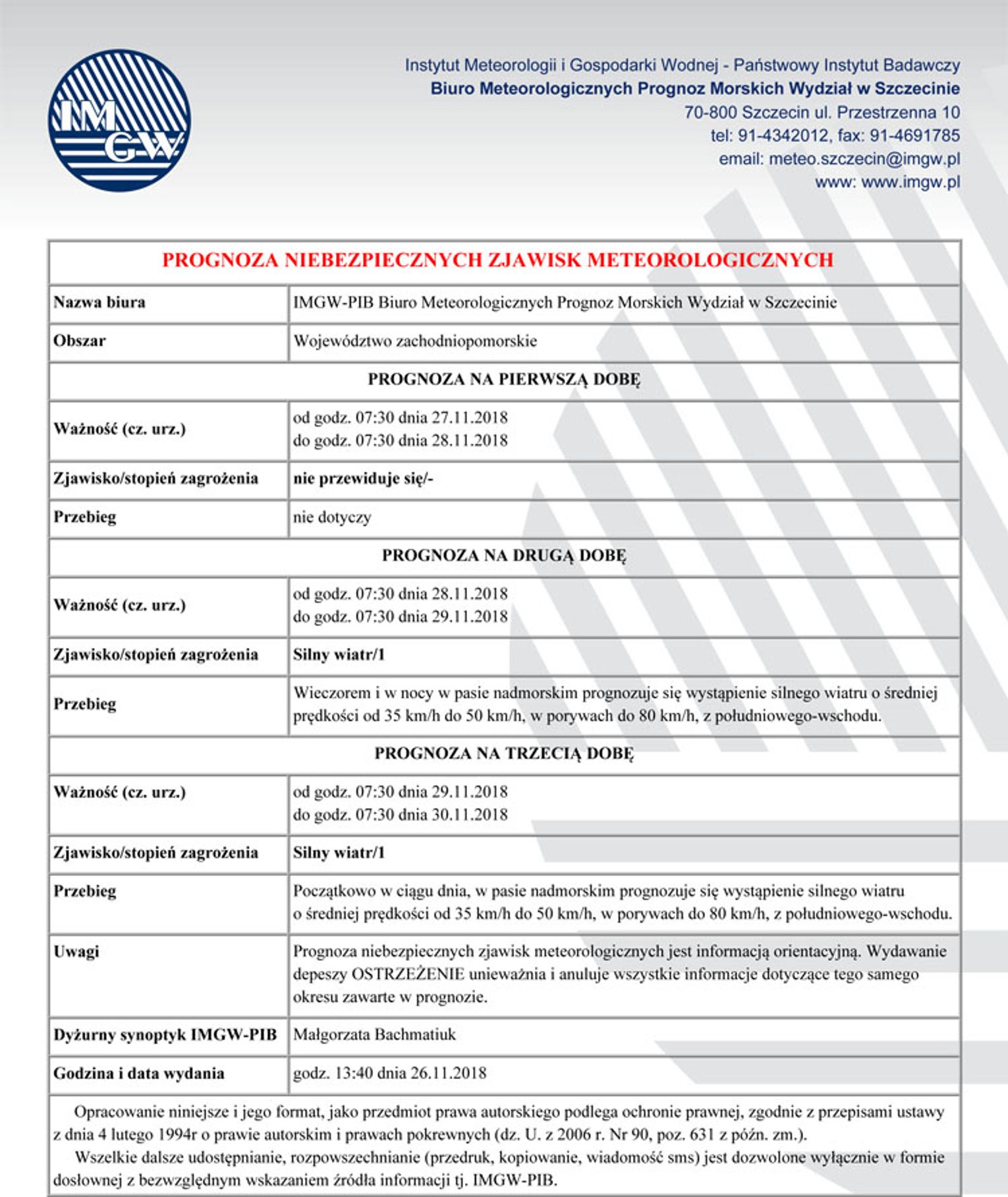 Od środy (28.11) do piątku (30.11) mieszkańcy powiatu sławieńskiego mogą spodziewać się silnego wiatru o średniej prędkości od 35 km/h do 50 km/h, w porywach do 80 km/h z południowego wschodu.