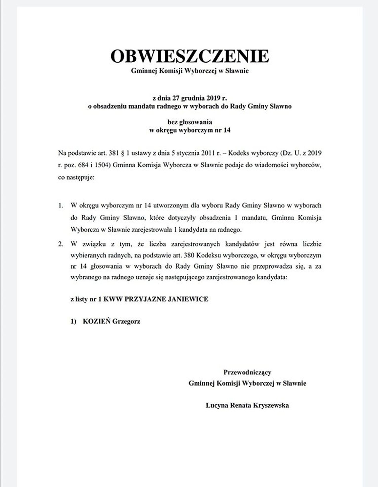 Radny, którego zgłosił komitet „Przyjazne Janiewice” przeszedł bez głosowania, bo był jedynym kandydatem. Więcej w wydaniu papierowym.