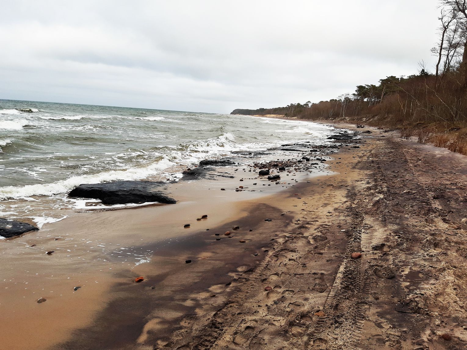 Wąska plaża, pełno kamieni i brązowy piach - tak aktualnie prezentuje się nadmorska plaża w Jarosławcu, przy wejściu z tzw. Pasa Startowego. Miejmy nadzieję, że do sezonu letniego morze odbuduje plażę, tak aby mogli na niej zagościć turyści przyjeżdżający do tego dziewiczego zakątku Polski.