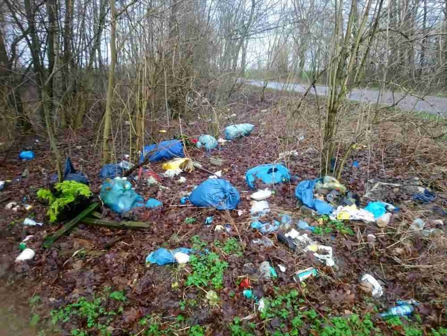 Tak wygląda teren na granicy gminy Postomino i gminy Sławno. Jak widać, brudasów w powiecie sławieńskim nie brakuje, a przecież każdy posiada swój kosz na śmieci, który jest systematycznie opróżniany (a czasem nawet myty!). Co więcej, poza odpadami w postaci szklanych butelek i plastików, są tam również odpady budowlane, np. pokrycie dachowe. Znajdą się również pozostałości po sprzęcie RTV, jak ekran starego telewizora.
