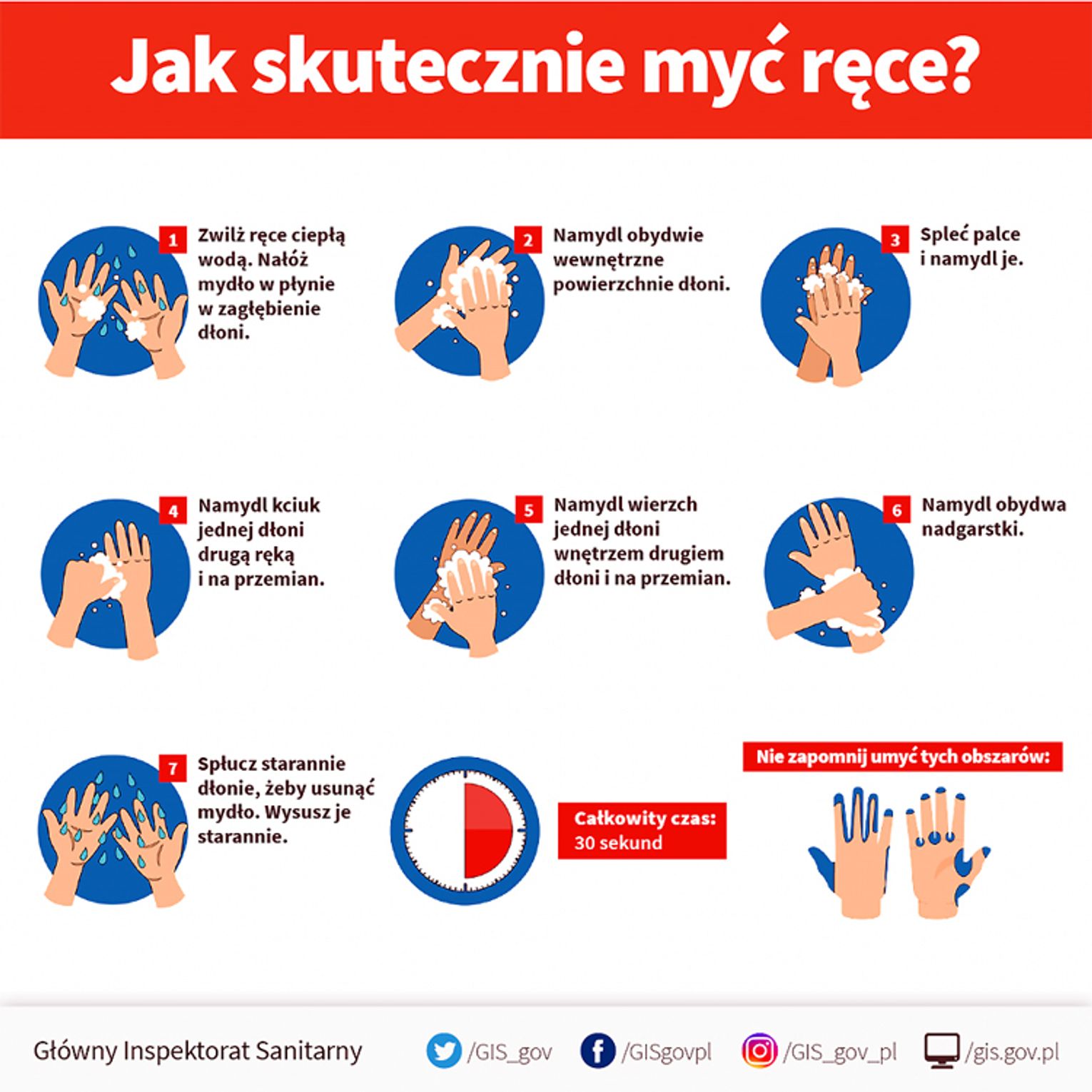 Instrukcja jak poprawnie i skutecznie myć ręce znajduje się powyżej.