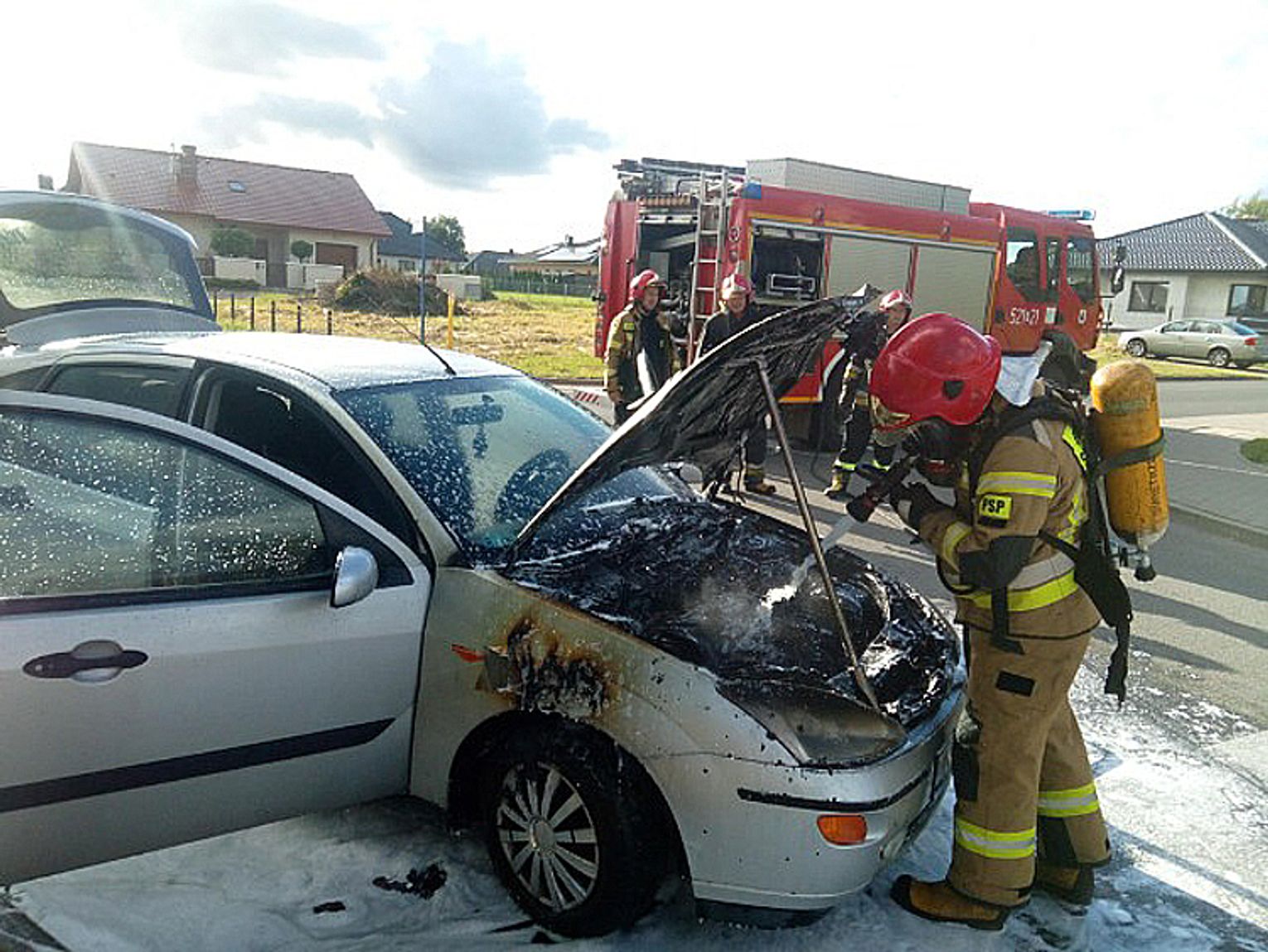 Ford Fokus zapalił się w trakcie jazdy ulicą Pułku Ułanów. Kierowcę, o tym, że dzieje się coś złego, zaalarmowali przechodnie, którzy zobaczyli wydobywający się dym. Pojazd zjechał w ulicę Witosa. Tam zastali go interweniujący strażacy z PSP Sławno. Spaleniu uległa komora silnika, ogień częściowo przedostał się do kabiny pasażerskiej, jednak strażacy szybko go ugasili. Na szczęście nikomu nic się nie stało, jednak straty są duże. (sim)