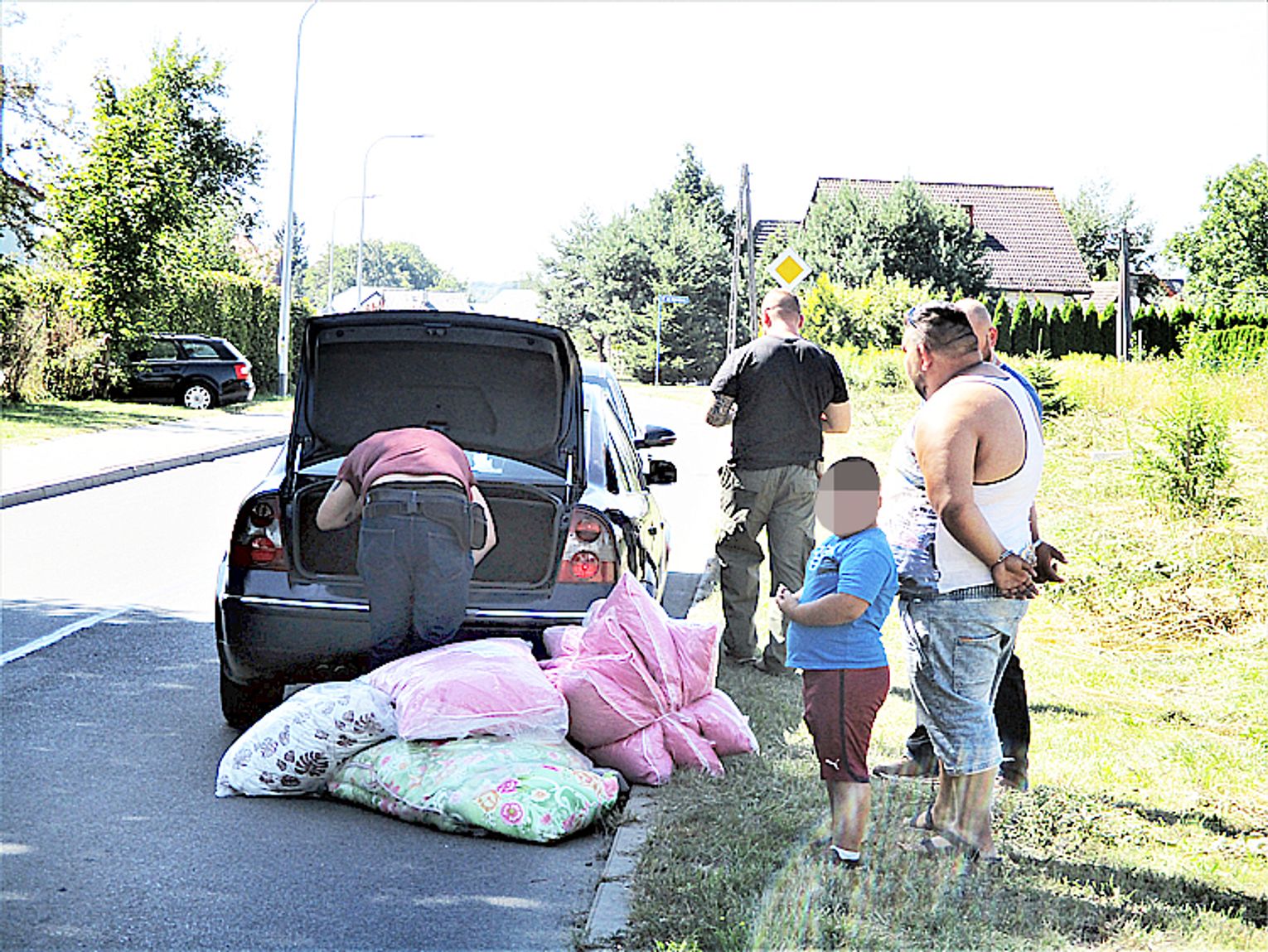 Mieszkańcy Pułku Ułanów byli świadkami spektakularnej akcji policji. Trzy radiowozy, pełne funkcjonariuszy, na wylocie ze Sławna zatrzymały Volkswagena Passata. Kierowcę (z wyglądu pochodzenia romskiego) i pasażera (około 10 letni chłopiec) usunięto z pojazdu, który bardzo dokładnie przeszukano. Z bagażnika, na jezdnię wyrzucono bagaże, pierzyny, poduszki itp. Świadkowie słyszeli, jak funkcjonariusze zastanawiali się, co zrobić z dzieckiem, gdy ojciec (opiekun) trafi do aresztu.