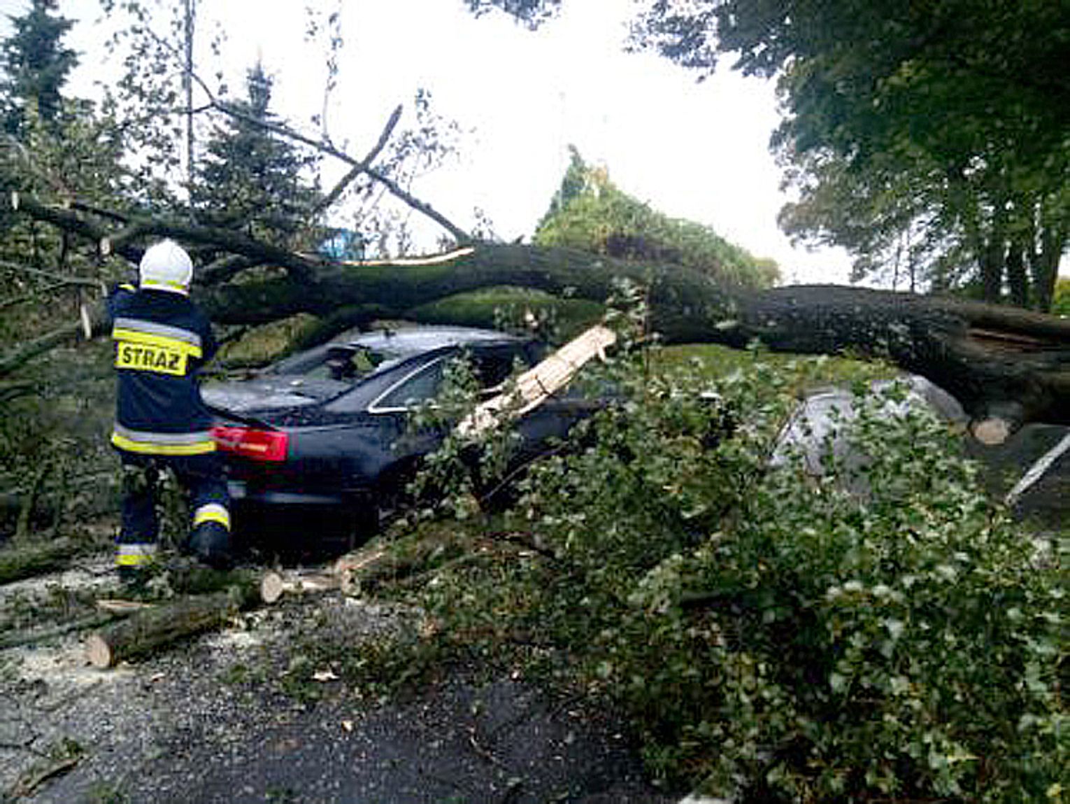 Wielkiego pecha miał właściciel widocznego na zdjęciu Audi. Podczas jazdy, w okolicach „Laminopolu” w Postominie na jego pojazd spadło potężne drzewo.