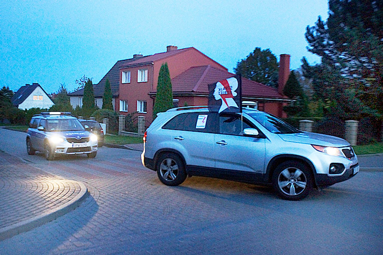 W Sławnie trwa strajk kobiet protestujących przeciwko zaostrzeniu prawa aborcyjnego. W niedzielę przybrał on formę zmotoryzowaną: przez kilkadziesiąt minut, kilka samochodów z flagami i transparentami z hasłami przeciwko decyzji Trybunału Konstytucyjnego, jeździło sławieńskim ulicami. W ślad za nimi podążał policyjny radiowóz.
