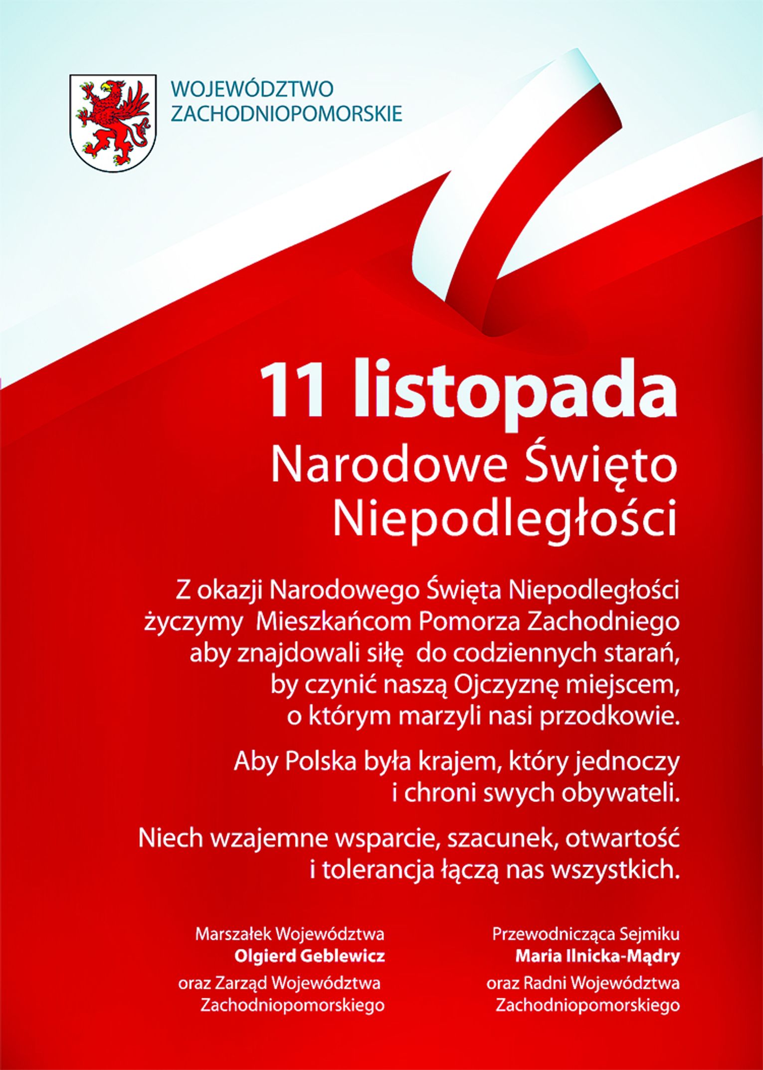 Z okazji Święta Niepodległości o godz. 11 marszałek województwa Olgierd Geblewicz złożył kwiaty pod popiersiem Marszałka Józefa Piłsudskiego na placu Szarych Szeregów. W tym samym miejscu o godz. 15 w miejskich uroczystościach udział wezmą przewodnicząca zachodniopomorskiego sejmiku Maria Ilnicka-Mądry i wicemarszałek Olgierd Kustosz.