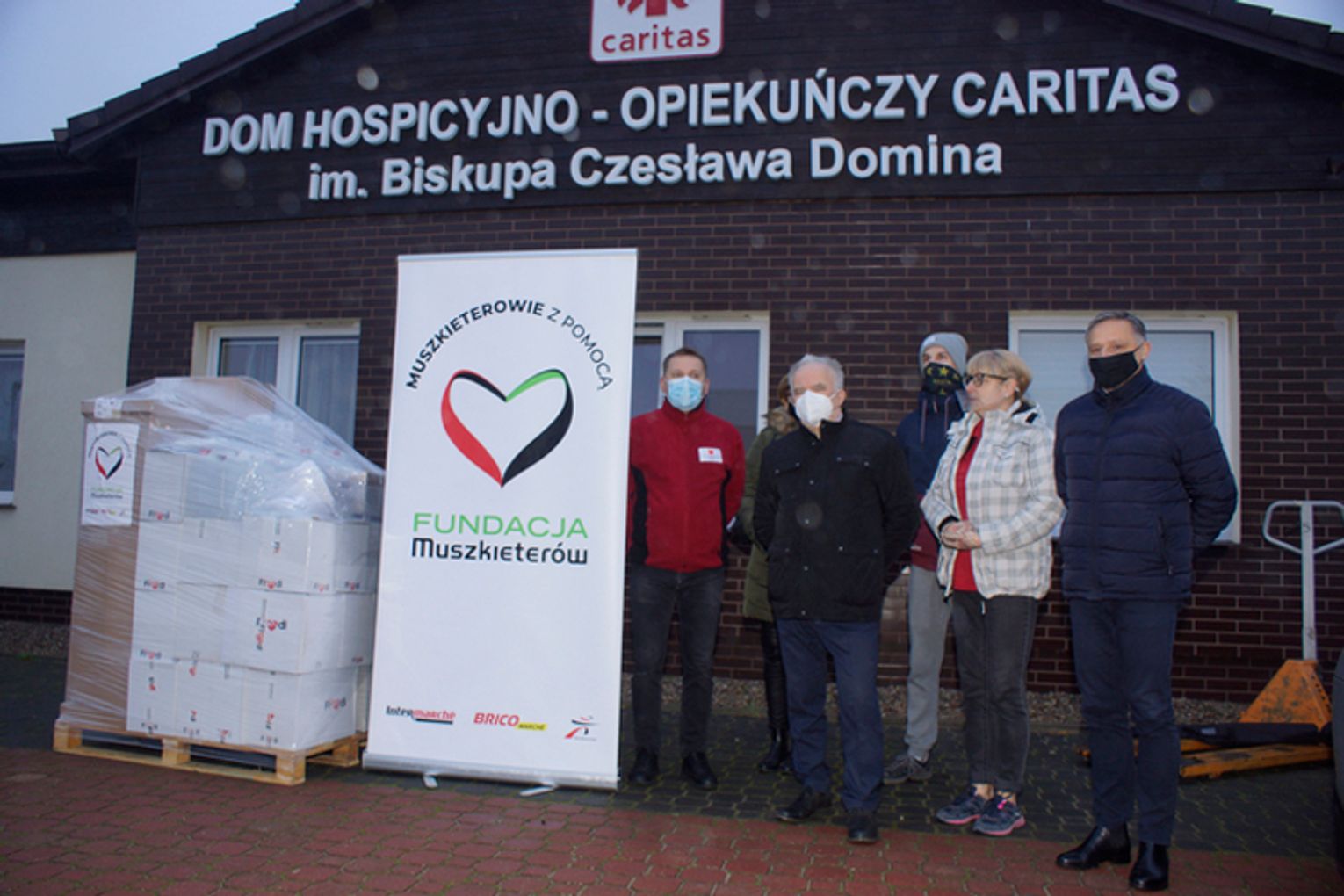 Płyny dezynfekujące, maseczki, przyłbice, rękawiczki jednorazowe, a także zapas środków czystości trafiły do darłowskiego Domu Hospicyjno-Opiekuńczego Caritas im. biskupa Czesława Domina.