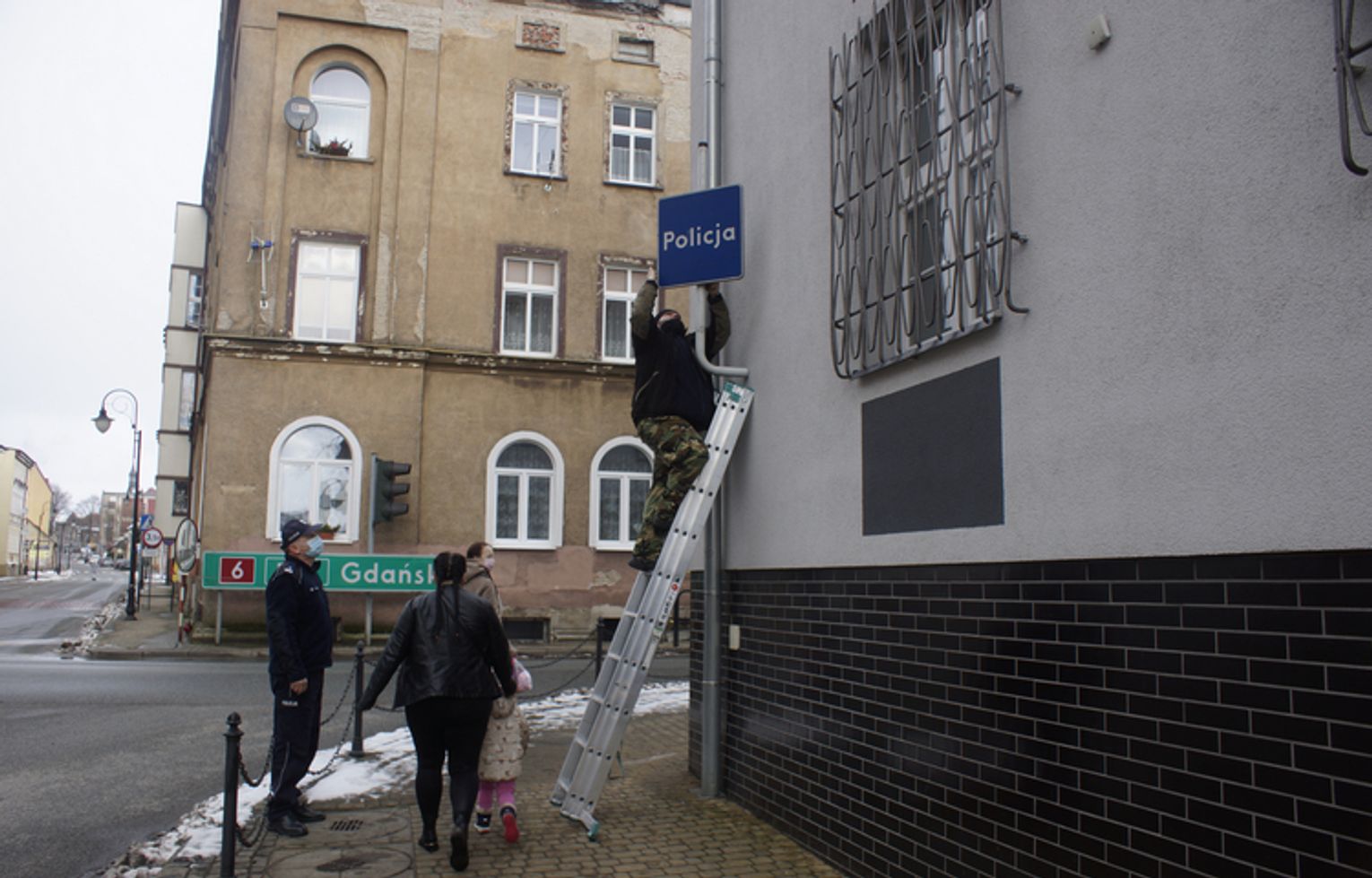 To już ostatnie policyjne akordy w budynku, w którym stróże prawa byli ponad 60 lat. W obecności podinspektora Andrzeja Kamody – Komendanta Powiatowego Policji w Sławnie, cywilni pracownicy komendy, zdjęli szyld i oznaczenia wizualne policji. Co prawda, budynek jeszcze przez jakiś czas, będzie pod nadzorem funkcjonariuszy, ale usunięcie oznaczeń jest symbolicznym pożegnaniem z obiektem.