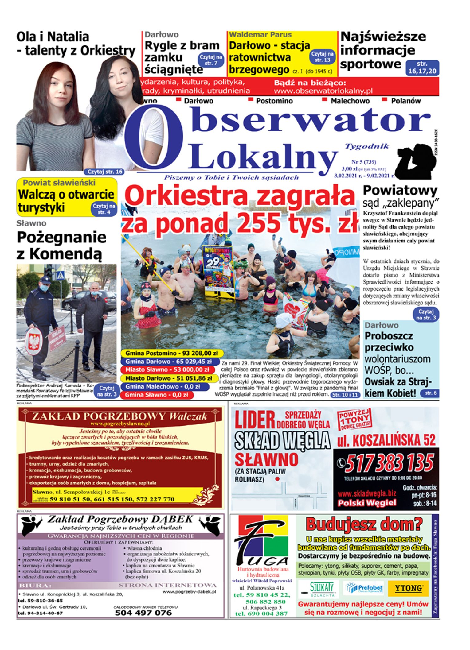A w nim najświeższe informacje lokalne z terenu powiatu sławieńskiego i gminy Polanów.