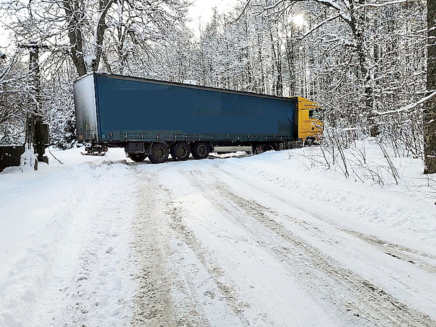 Od kilkudziesięciu minut zablokowane jest skrzyżowanie dróg Sulechowo – Lejkowo z drogą do Święcianowa (Bobrowic). Potężny TIR chciał skręcić w tym miejscu, ale śnieg i lód unieruchomiły go. Lada chwila, w miejscu tym ma zjawić się ciągnik rolniczy, który będzie starał się pomóc kierowcy ciężarówki. Tylko, czy da radę?
