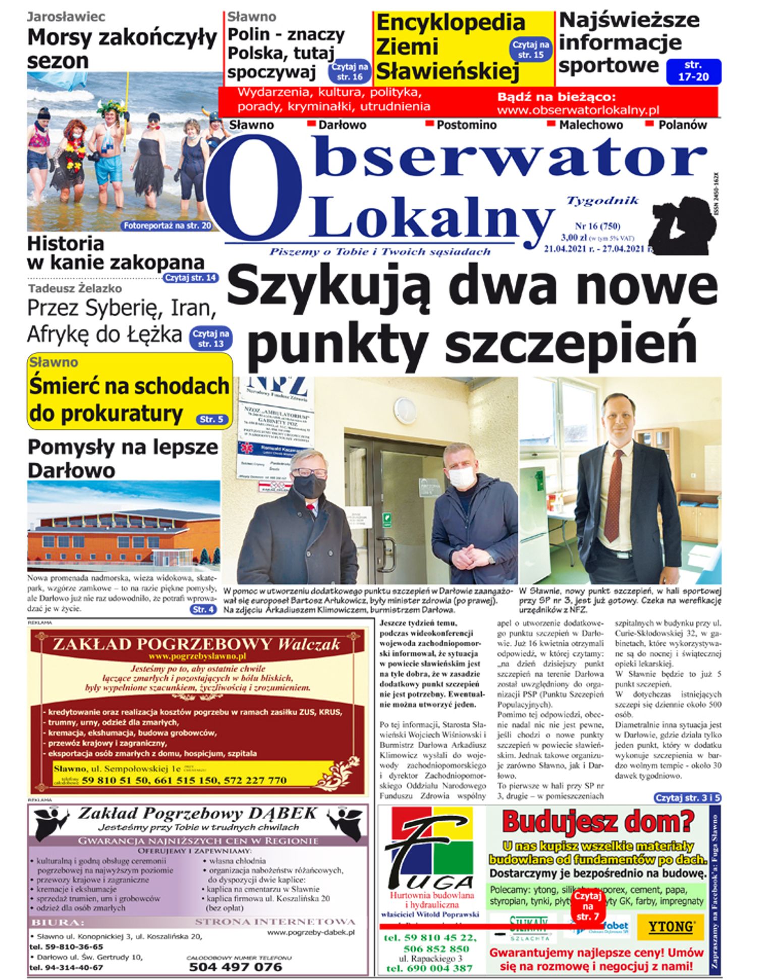 A w nim najświeższe informacje lokalne z terenu powiatu sławieńskiego i gminy Polanów.
