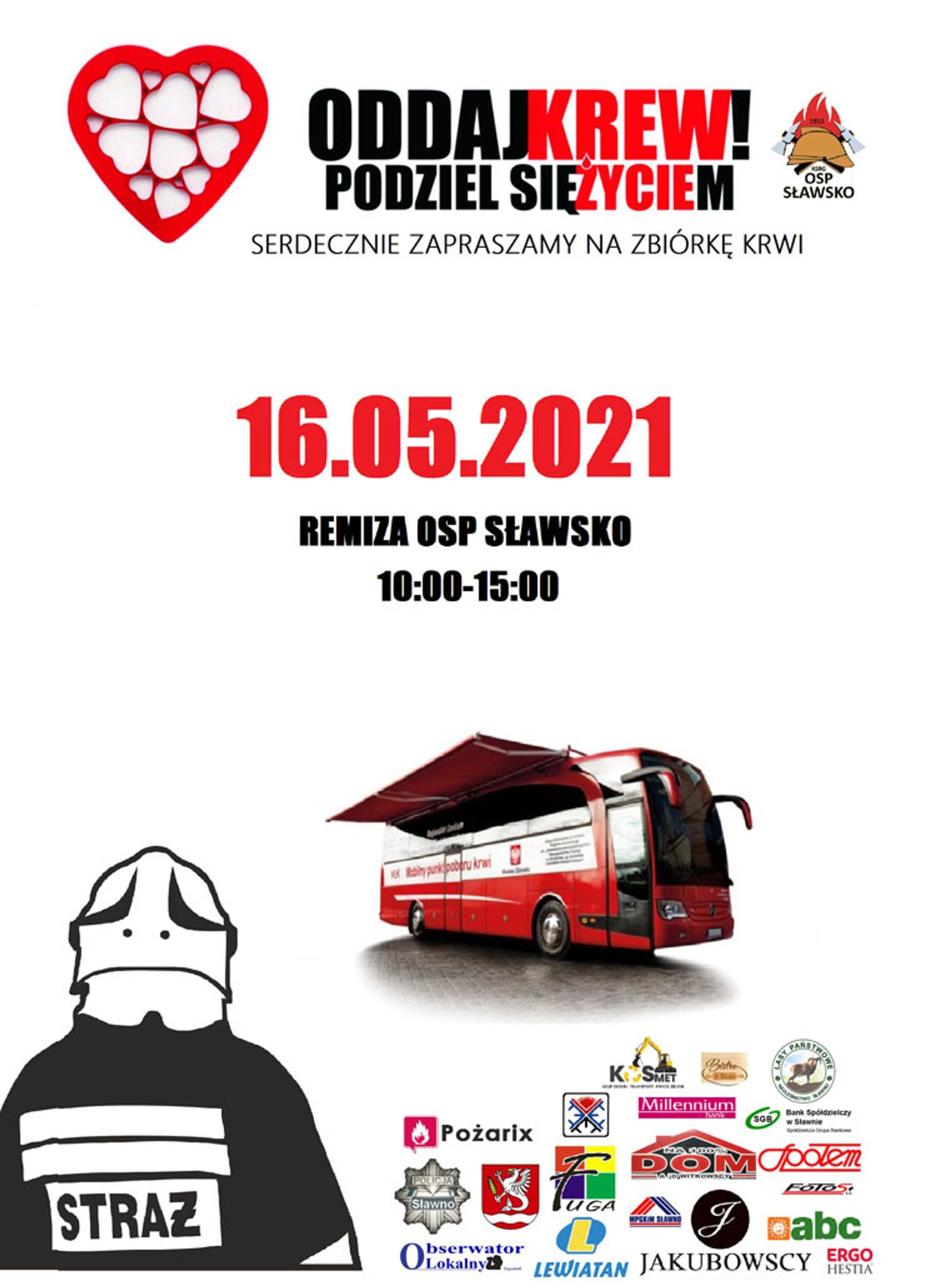 Ochotnicza Straż Pożarna w Sławsku już dziś zaprasza do oddania krwi. Prosimy o zaplanowanie tego dnia tak, aby wspomóc tak potrzebną dla życia krew.