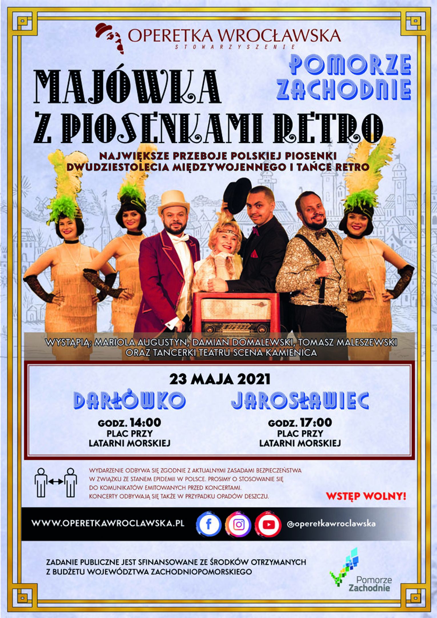 W dniu 2 3 maja 2021 turyści i mieszkańcy nadmorskich miejscowości będą mogli wysłuchać piosenek pochodzących z dwudziestolecia międzywojennego. Znakomici wokaliści: Mariola Augustyn, Damian Domalewski, Tomasz Maleszewski oraz tancerze Teatru Scena Kamienica przeniosą słuchaczy w podróż po kabaretowym świecie polskich przebojów E. Bodo, H. Ordonówny, M. Fogga i J. Kiepury. Usłyszymy takie muzyczne perły i szlagiery, jak: "Powróćmy jak za dawnych lat...", "Jesienne róże", "Zimny drań", "Umówiłem się z nią na 9", "Brunetki, blondynki", "Ach śpij kochanie", "Gramofonomanka", "Na pierwszy znak", Ta mała" i wiele innych niezapomnianych melodii. Nie zabraknie także tańców retro!