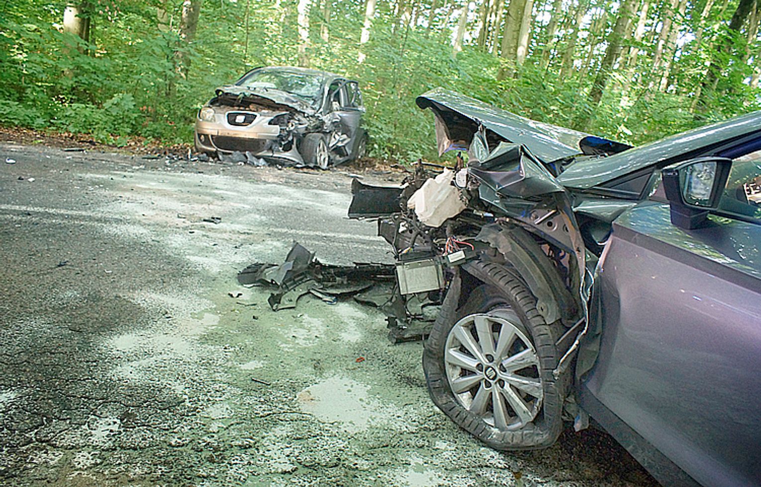 Są to rodziny: kobiety z Ząbkowic Śląskich i mężczyzny z okolic Poznania. Tuż za Ostrowcem doszło do groźnego zdarzenia drogowego. Jadący na wczasy, 72 letni Poznaniak (jechały z nim 4 osoby w tym dziecko), nie zważając na podwójną linie ciągłą, wyprzedzał w miejscu ograniczonej widoczności. Z naprzeciwka nadjechała wracająca z wczasów 21 letnia mieszkanka Ząbkowic Śląskich (z pasażerem). Doszło do czołowego zderzenia. Do szpitali w Koszalinie i w Słupsku, na badania trafiły 3 osoby (także dziecko). Sprawcy nic się nie stało.