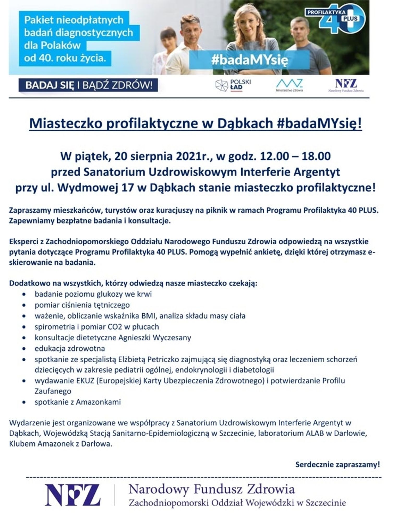 Dodatkowo dla wszystkich, którzy odwiedzą nasze miasteczko profilaktyczne czekają bezpłatne konsultacje medyczne i badania: