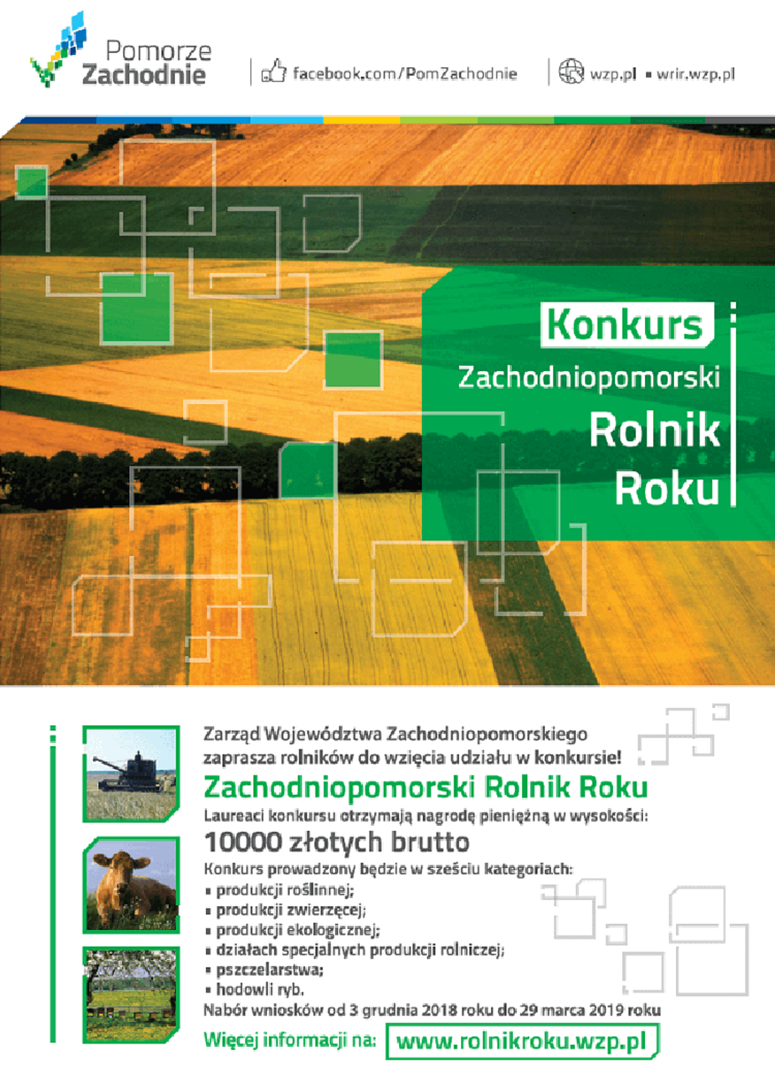 Regulamin konkursu oraz formularz zgłoszeniowy znajdują się na stronie: www.rolnikroku.wzp.pl.