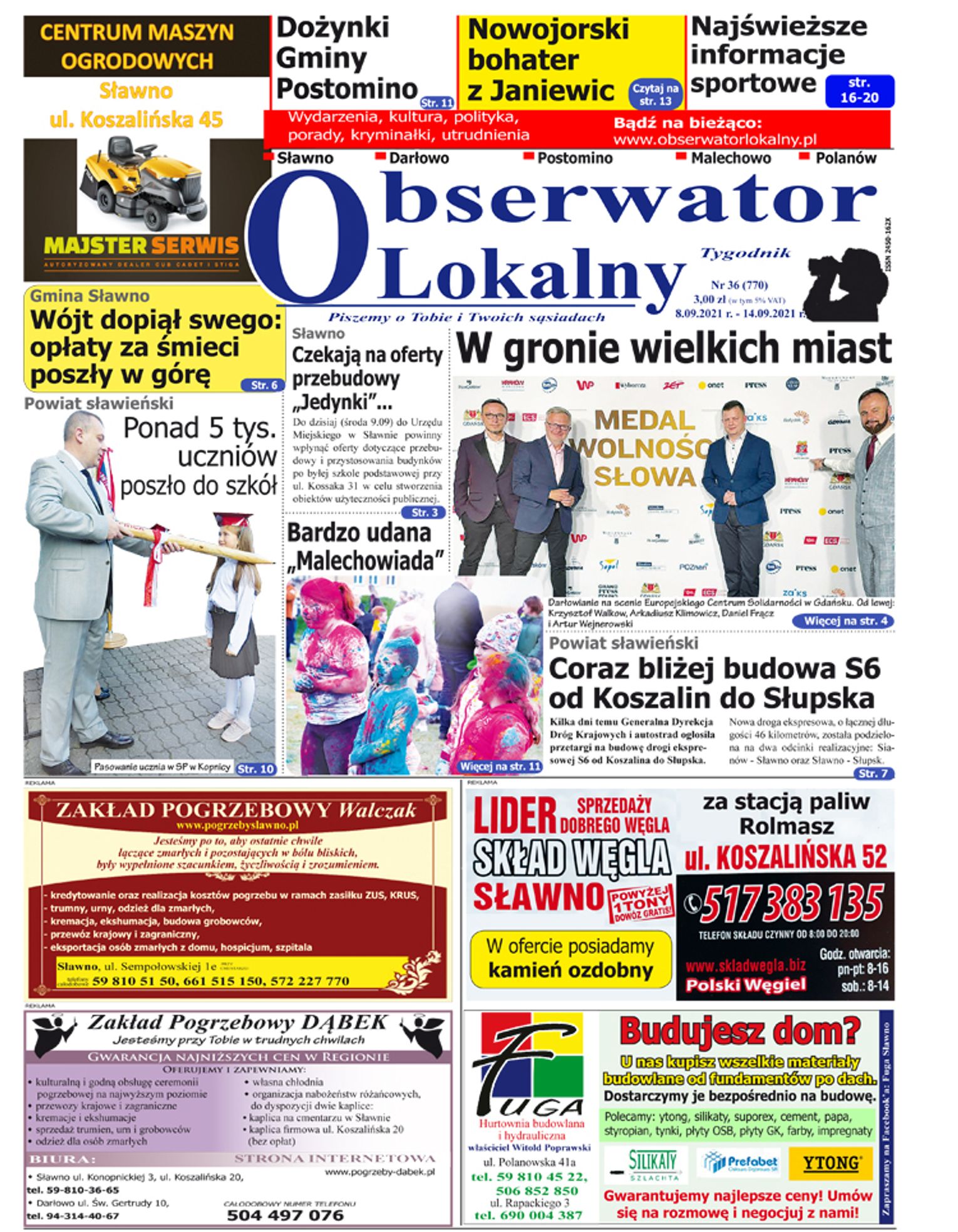 A w nim najświeższe informacje lokalne z terenu powiatu sławieńskiego i gminy Polanów.