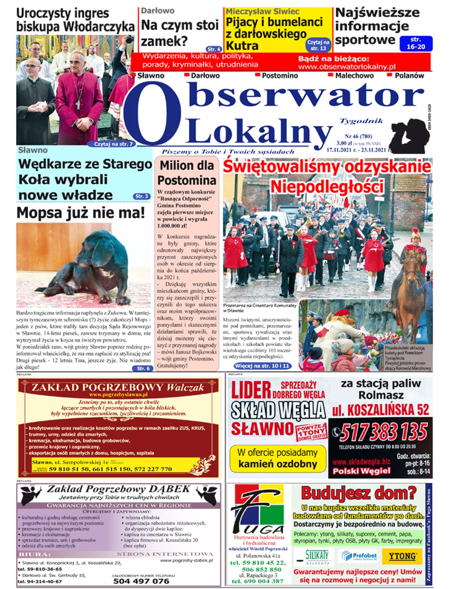 A w nim najświeższe informacje lokalne z terenu powiatu sławieńskiego i gminy Polanów.