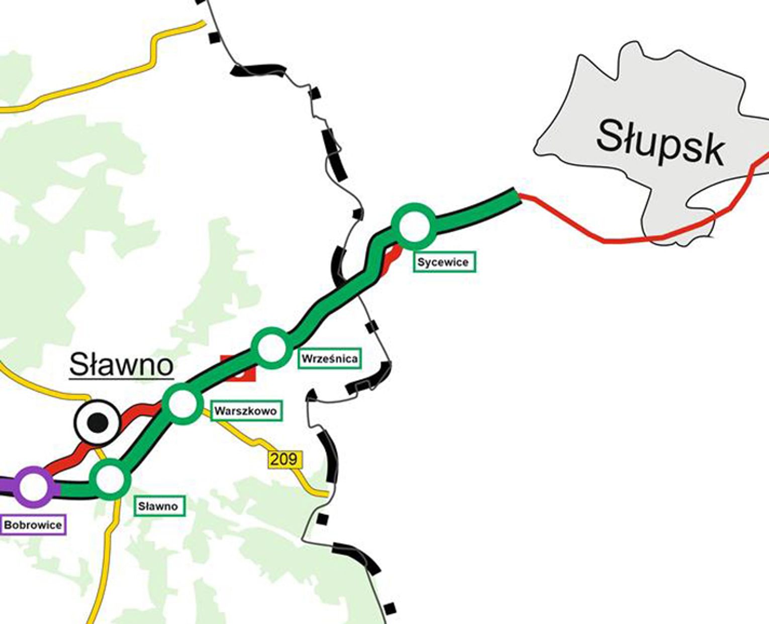 Odcinek o długości 22,9 km omija Sławno częściowo od strony południowej i biegnie do Słupska, znajdującego się już w województwie pomorskim. W ramach umowy, podobnie jak w przetargu na odcinek Koszalin - Sławno, wykonawca przygotuje projekty wykonawcze, zrealizuje roboty budowlane wraz z uzyskaniem decyzji o pozwoleniu na użytkowanie. Oprócz trasy głównej powstaną cztery węzły drogowe (Sławno, Warszkowo, Wrześnica i Sycewice) oraz infrastruktura towarzysząca. W planach jest m.in przebudowa dróg krzyżujących się z nową „eską”, budowa dróg dojazdowych, a także awaryjnych wjazdów czy przejazdów.
