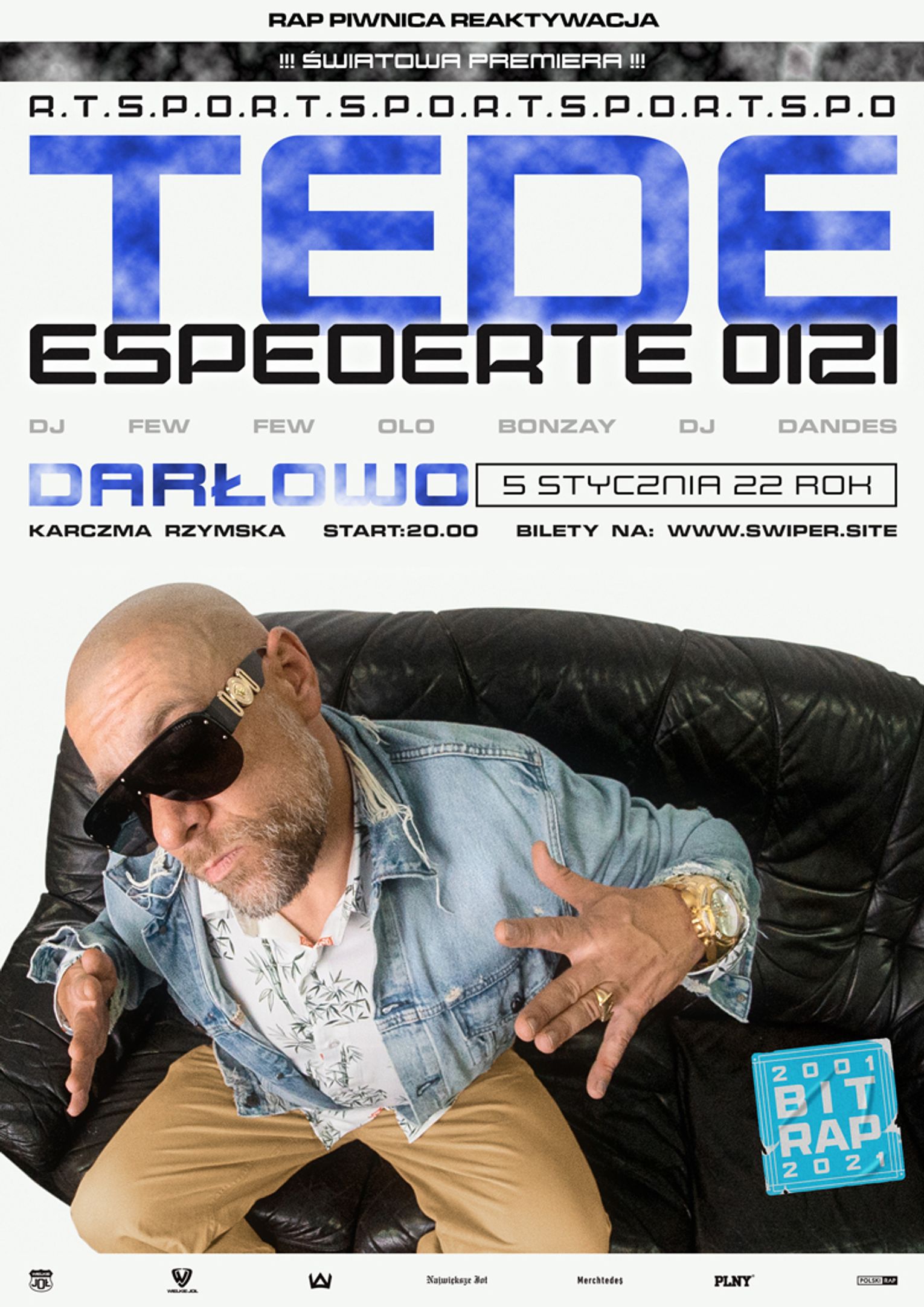 13 grudnia na półki sklepowe trafił nagrany i wydany spontanicznie nowy album Tedego o tytule "ESPEOERTE 0121". Kiedy raper przygotowywał się do świętowania 20-lecia wydania swojego debiutanckiego albumu o tytule "S.P.O.R.T." natknął się na niepublikowane nigdy do tej pory swoje produkcje sprzed dwóch dekad. Były to nagrane utwory jak i same instrumentale, które oczywiście również osobiście wtedy stworzył. Tede postanowił wykorzystać te intrumentale i zarapować do nich. Tak powstał ten album, który po raz pierwszy na żywo usłyszeć będziecie mogli właśnie w Darłowie !!!Bity 2001, rap 2021 - to jest właśnie ESPEOERTE 0121. A Joł jest Wielkie!
