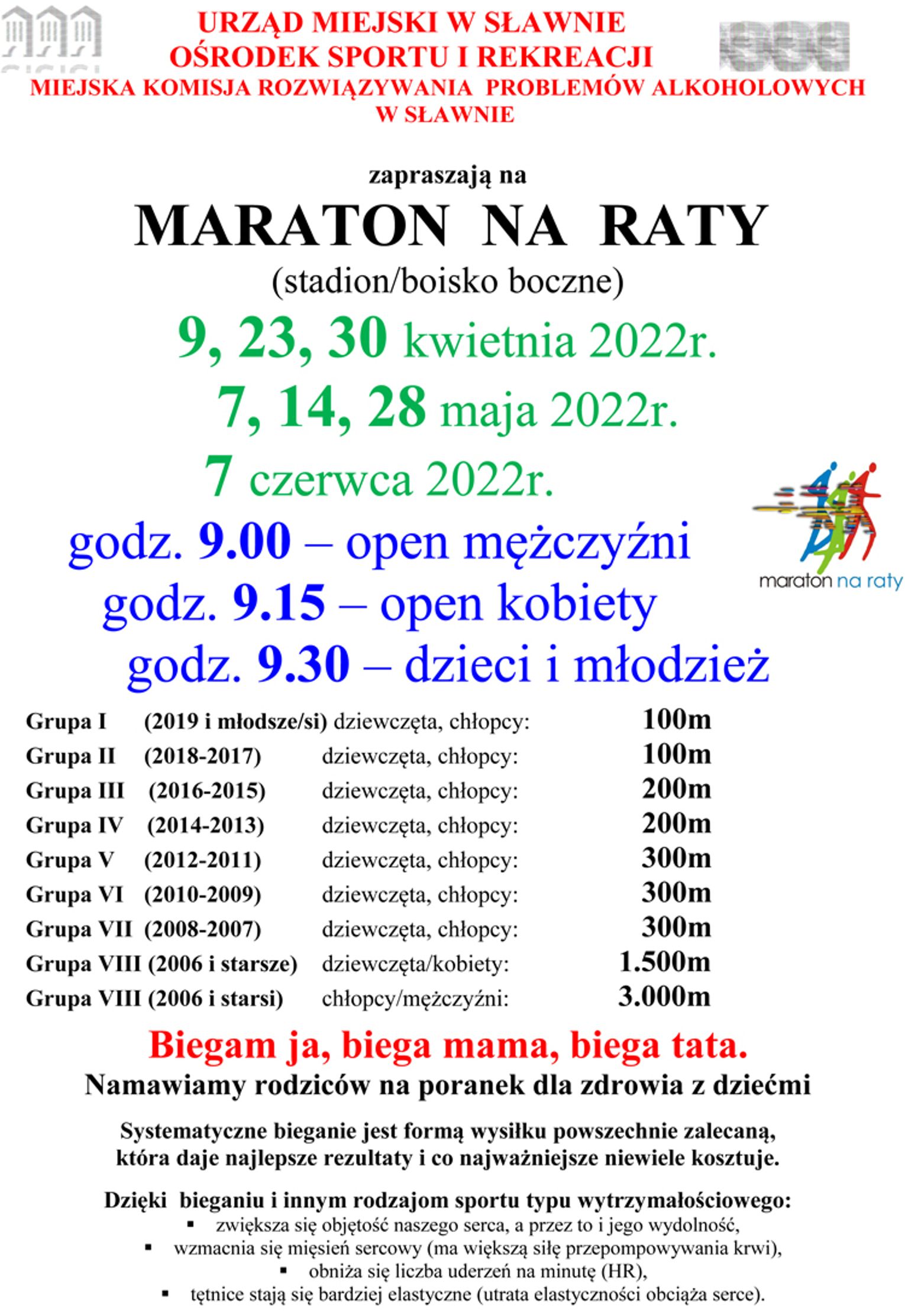 Ośrodek Sportu i Rekreacji w Sławnie zaprasza na kolejną edycje "Maratonu na raty" Pierwsze zawody odbędą się 9 kwietnia br.