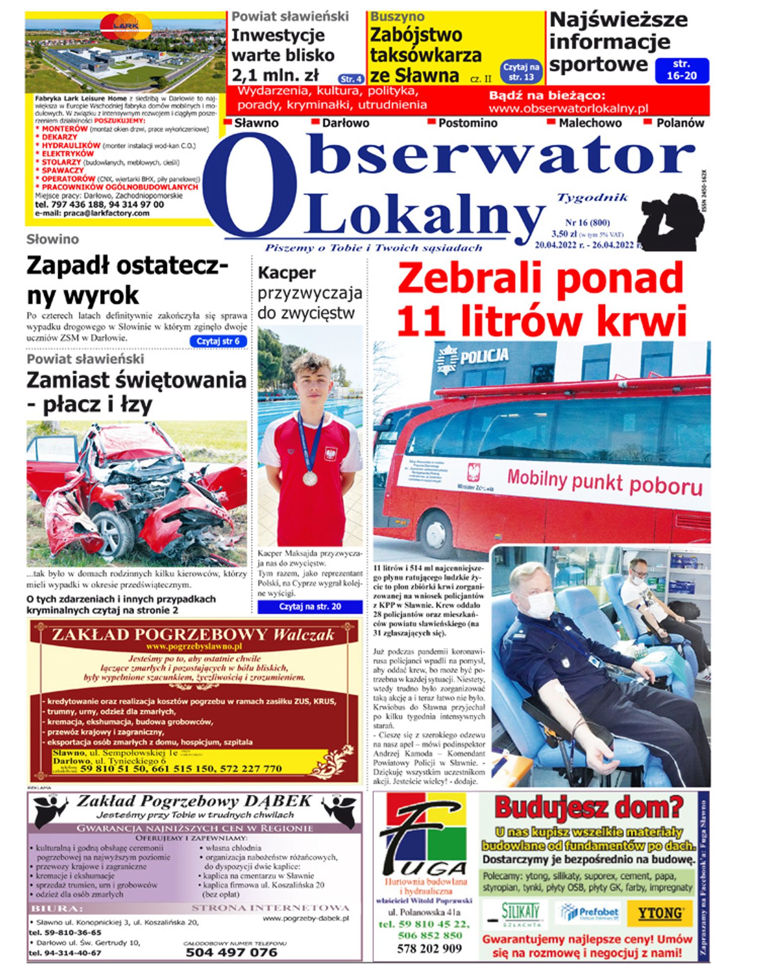 A w nim najświeższe informacje lokalne z terenu powiatu sławieńskiego i gminy Polanów.