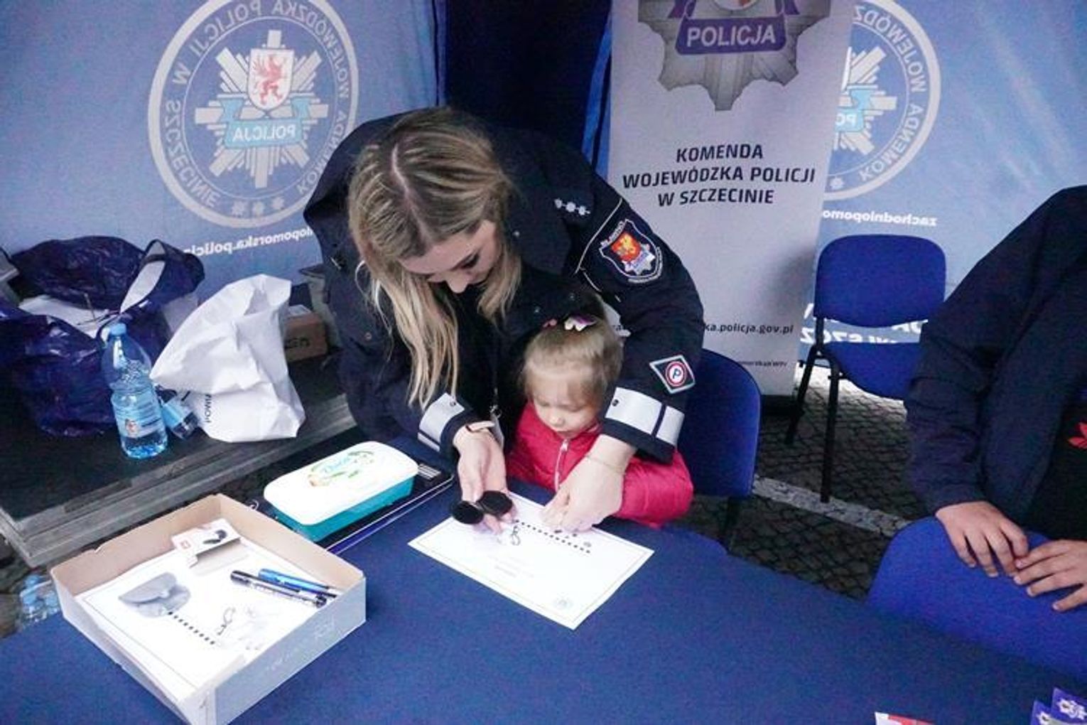 Najmłodsi mieli możliwość przyjrzeć się z bliska elementom wyposażenia policyjnego, które z chęcią przymierzali, a rodzice chcąc uwiecznić ten moment robili swoim pociechom pamiątkowe zdjęcia.