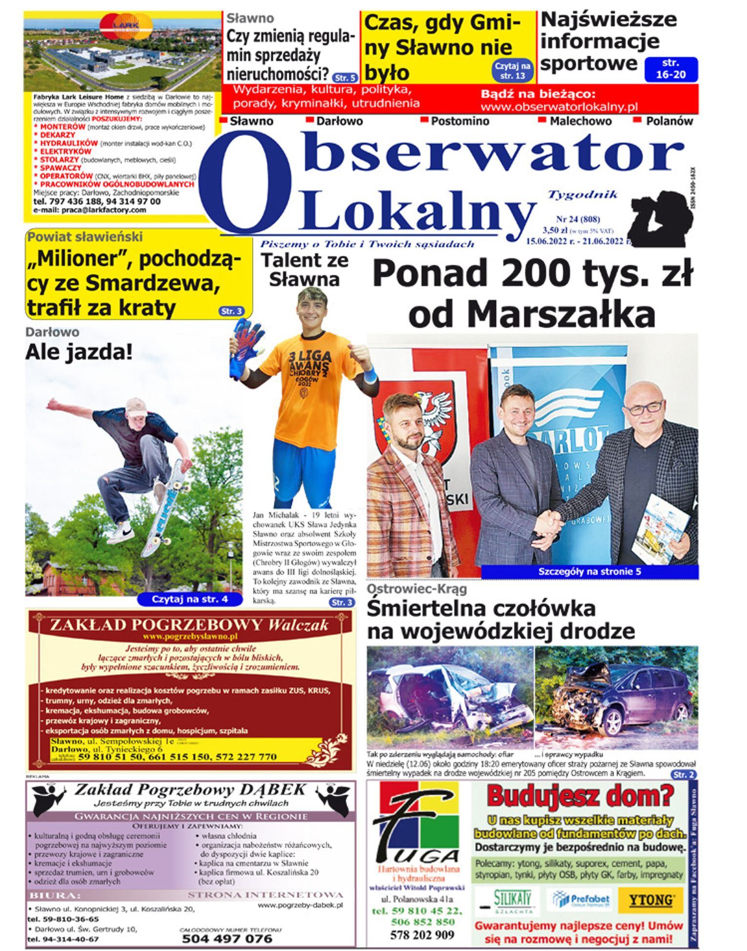 A w nim najświeższe informacje lokalne z terenu powiatu sławieńskiego i gminy Polanów.