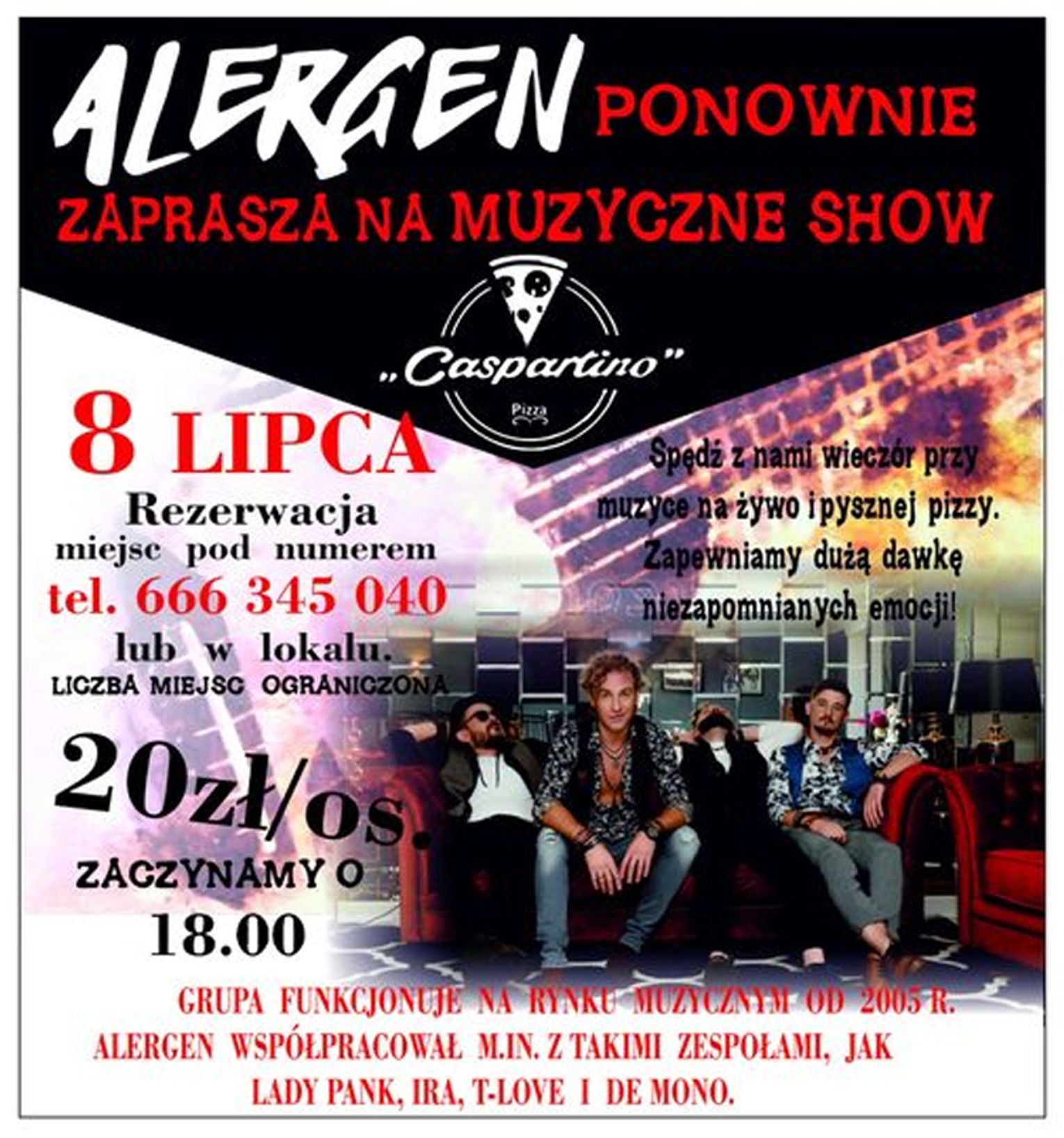 Piosenki zespołu Alergen często goszczą na listach przebojów, niejednokrotnie zdobywając pierwsze miejsca w głosowaniach publiczności . Koncerty dla grupy to,, łyk świeżego powietrza i paliwo rakietowe do dalszego działania". Artyści powtarzają: ,,wiatr w obie strony, to jest to, co najbardziej kochamy w spotkaniach z publicznością". WIĘC ZRÓBMY HURAGAN !