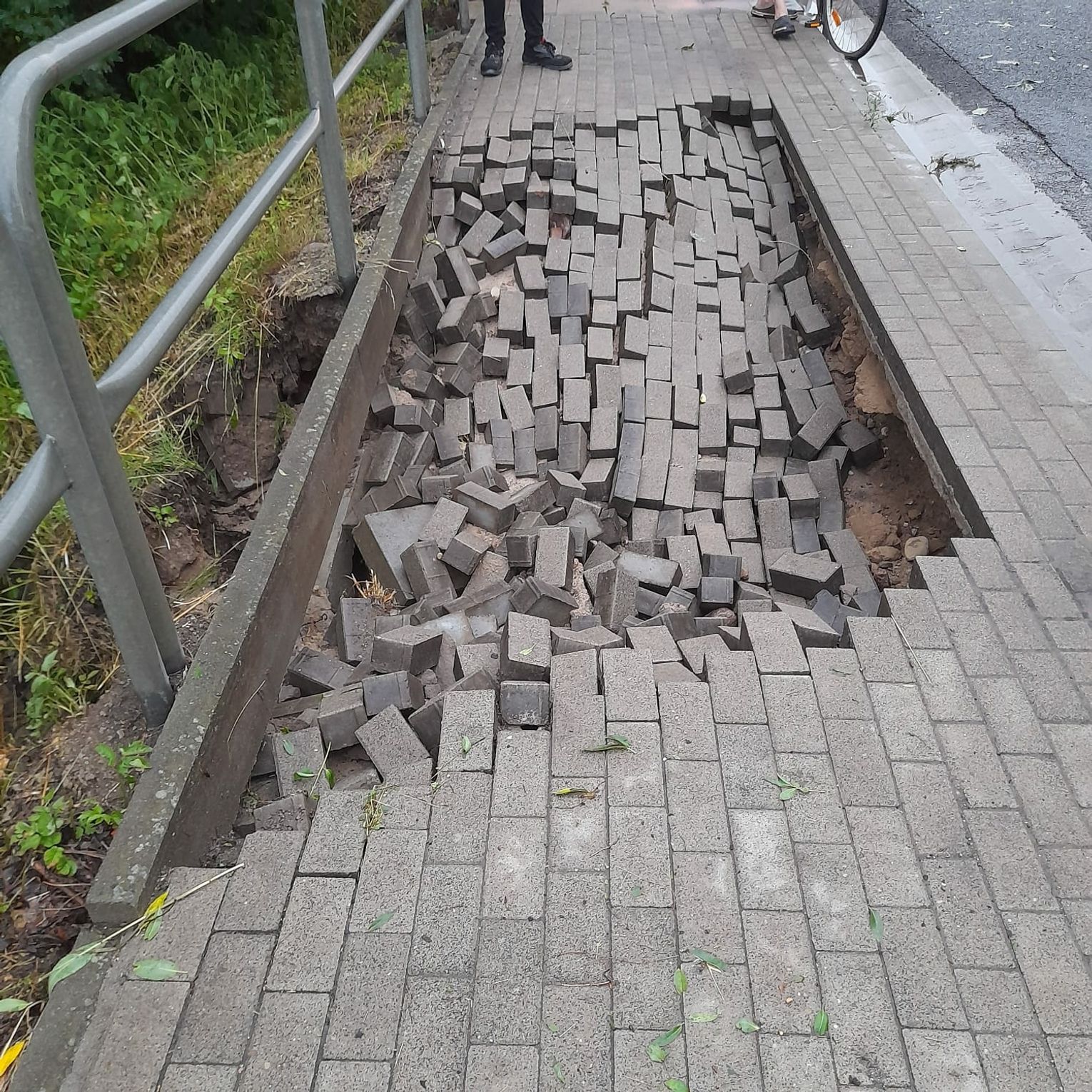 Wczorajsze oberwanie chmury to nie tylko kłopoty komunikacyjne i zalane piwnice. Czytelnik nadesłał zdjęcia z Bobrowic, gdzie siła pędzącej wody była tak duża, że wymyła podbudowę chodnika.