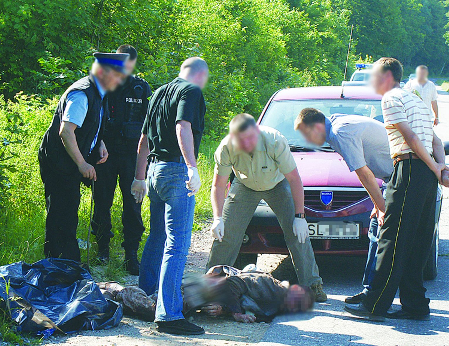 Początkowo wszystko wskazywało, że jest to ofiara potrącenia przez samochód. Na miejsce przybyła ekipa dochodzeniowo-śledcza ze sławieńskiej Komendy Powiatowej Policji. Funkcjonariusze oglądający ciało szybko doszli do wniosku, że to nie jest ofiara drogowego wypadku. Mężczyzna nosił obrażenia świadczące o działaniu osób trzecich.