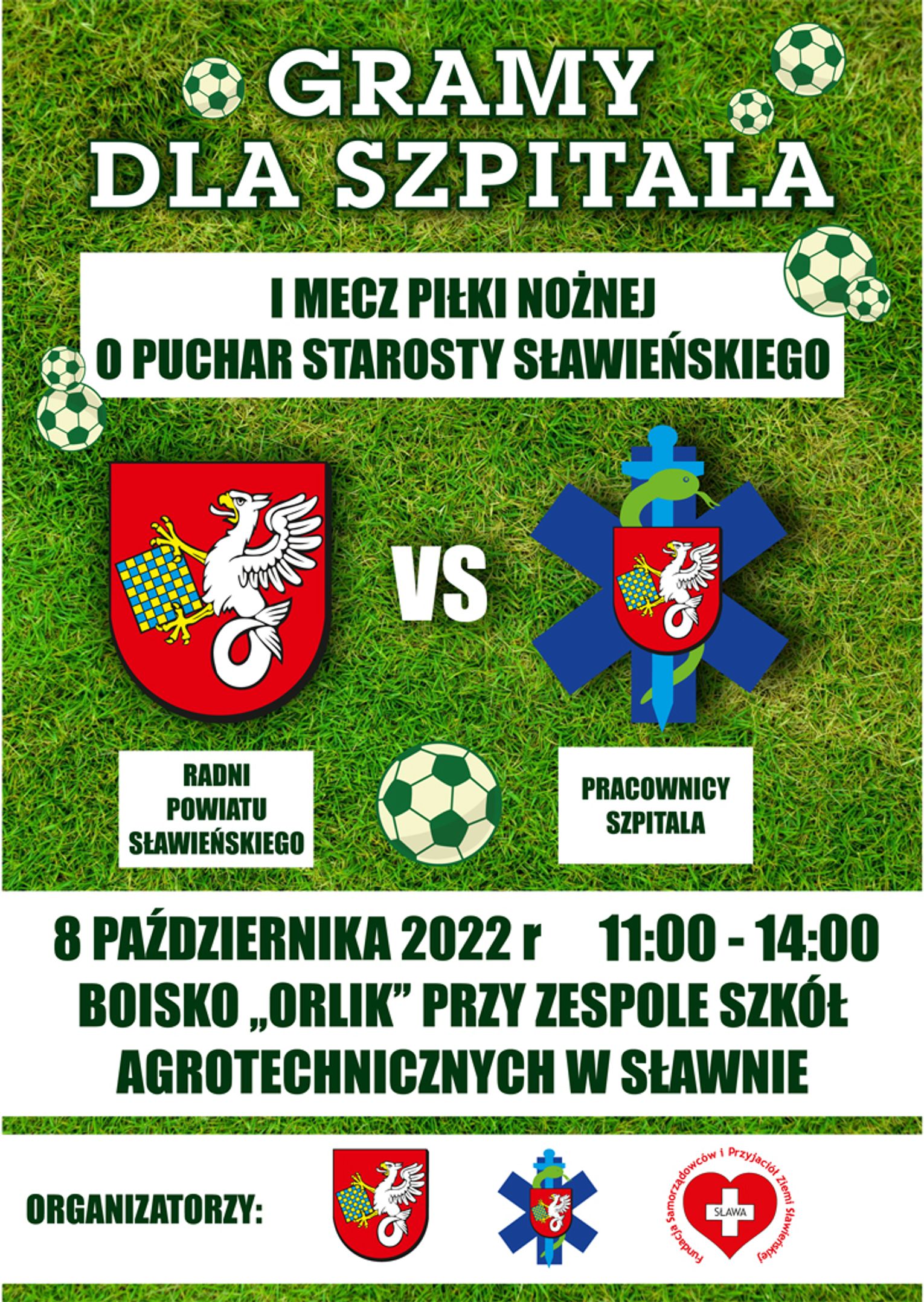 "Gramy dla szpitala", pod taką nazwą odbędzie się I Mecz Piłki Nożnej o Puchar Starosty Sławieńskiego. Mecz odbędzie się w sobotę 8 października w godz. 11-14 tej. na Orliku przy Zespole szkół Agrotechnicznych w Sławnie.