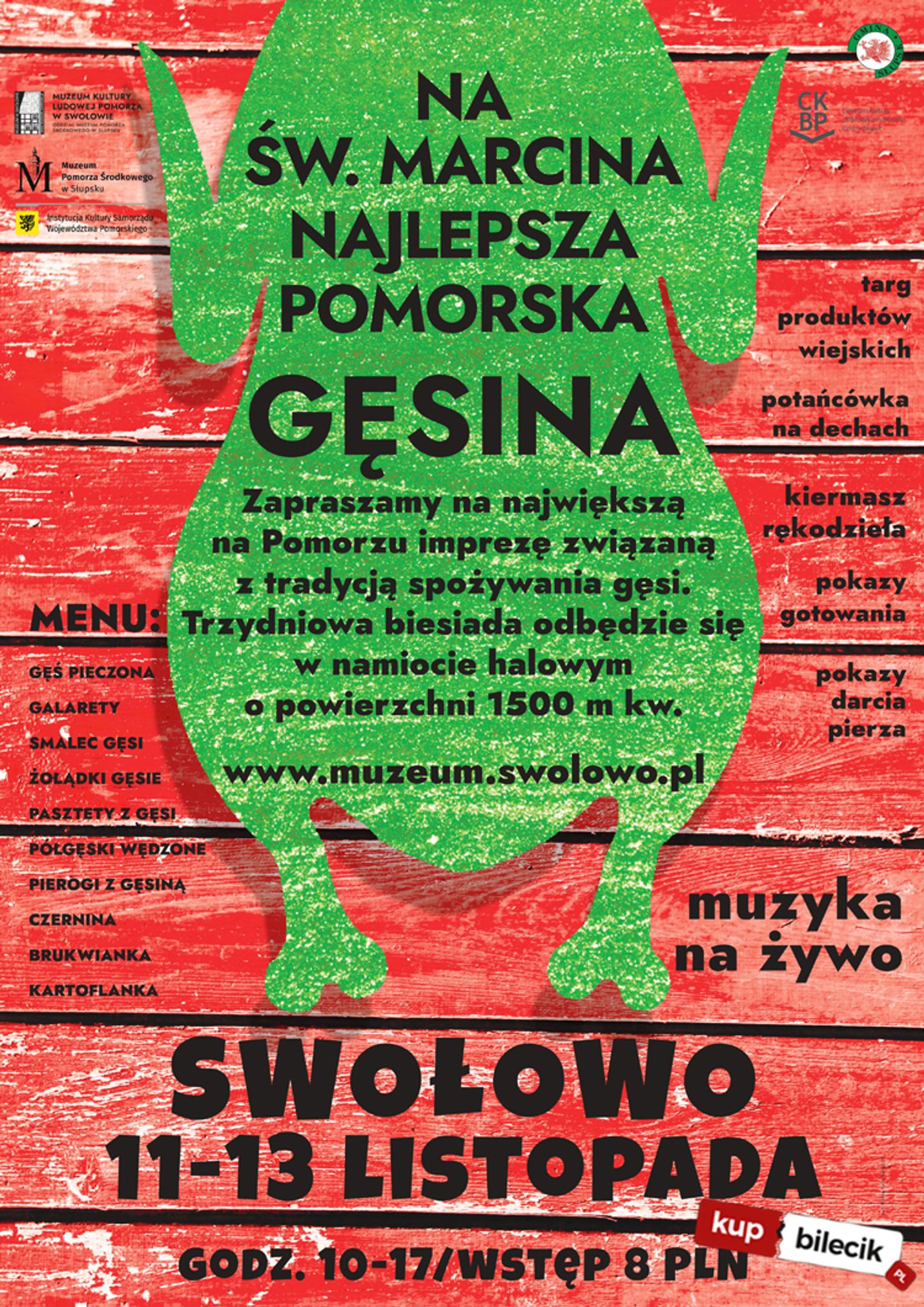 Impreza „Na Św. Marcina Najlepsza Pomorska Gęsina” to atrakcyjna alternatywa wspólnego świętowania rocznicy Odzyskania Niepodległości w pięknej pomorskiej wsi Swołowo – stolicy „Krainy w Kratę”.