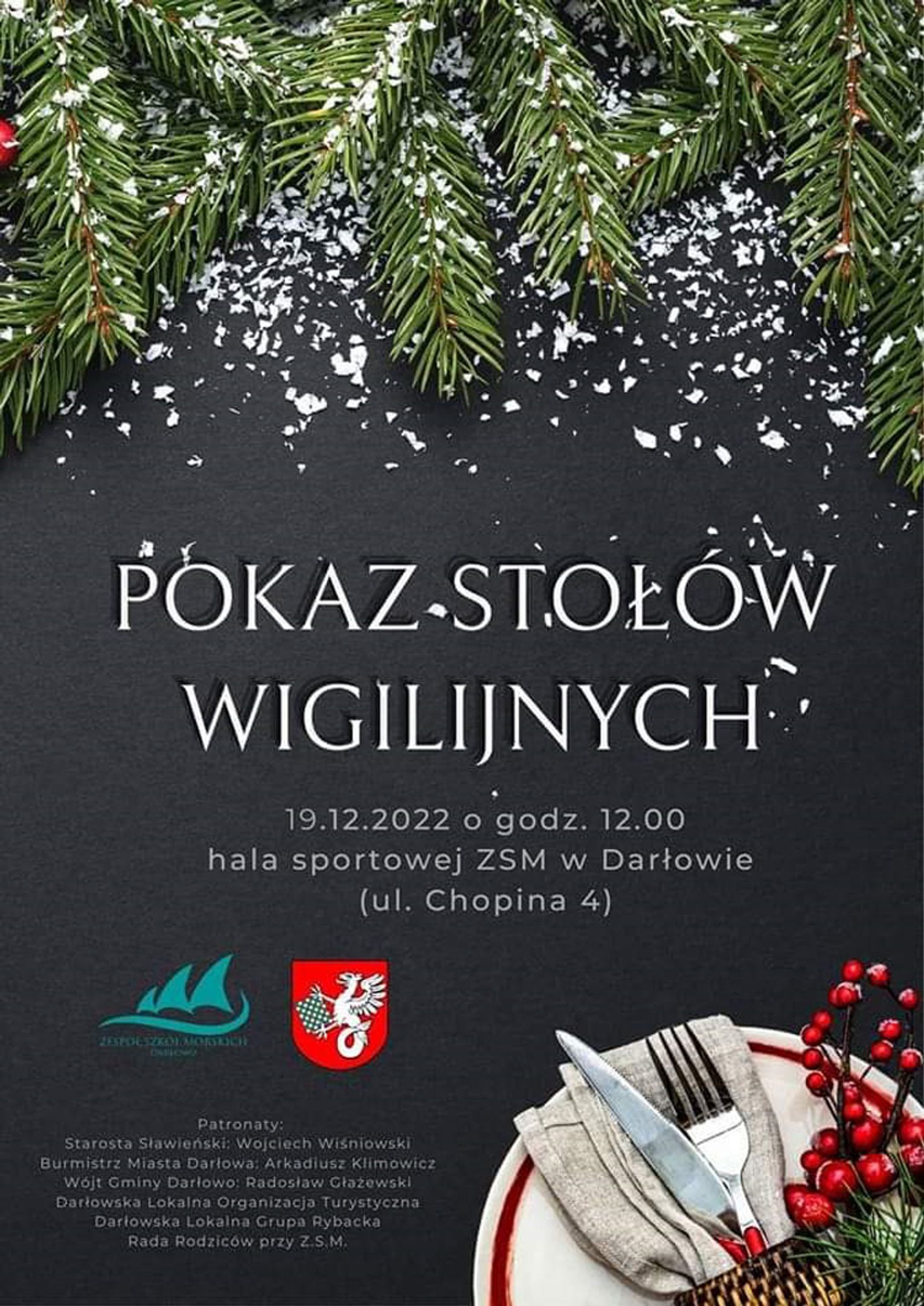 Zapraszamy serdecznie 19 grudnia o godzinie 12 na salę gimnastyczną przy ulicy Chopina 4 w Darłowie