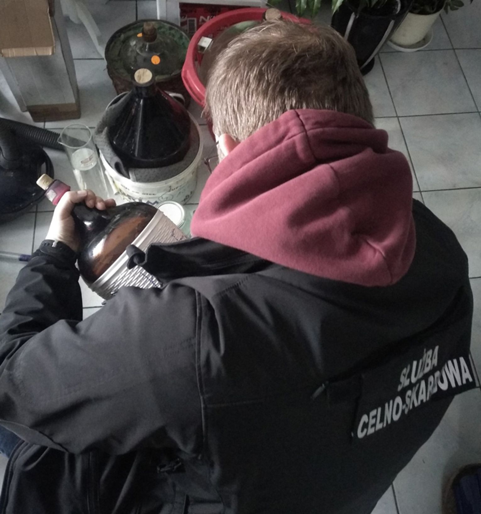 Podczas przeszukania zabezpieczyliśmy też aparat do produkcji alkoholu etylowego. Zatrzymany alkohol został zabezpieczony i zbadany pod kątem stężenia alkoholu przez technika kryminalistyki Krajowej Administracji Skarbowej.