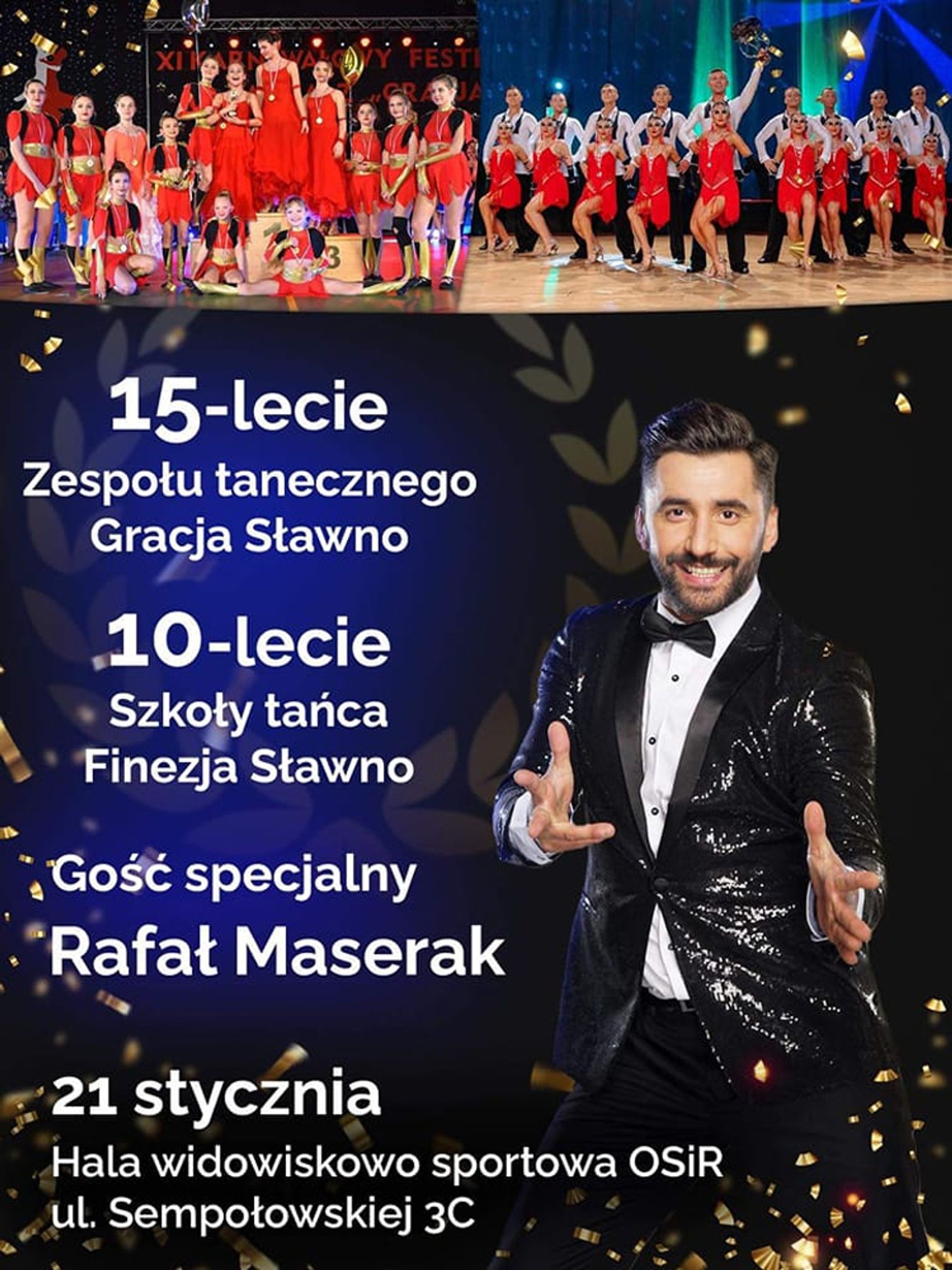 W tym dniu odbędzie się jubileusz 15-lecia zespołu tanecznego „Gracja” oraz 10-lecie Szkoły Tańca „Finezja”. Gwiazdą wieczoru będzie Rafał Maserak - światowej sławy tancerz tańca towarzyskiego, choreograf i instruktor tańca.