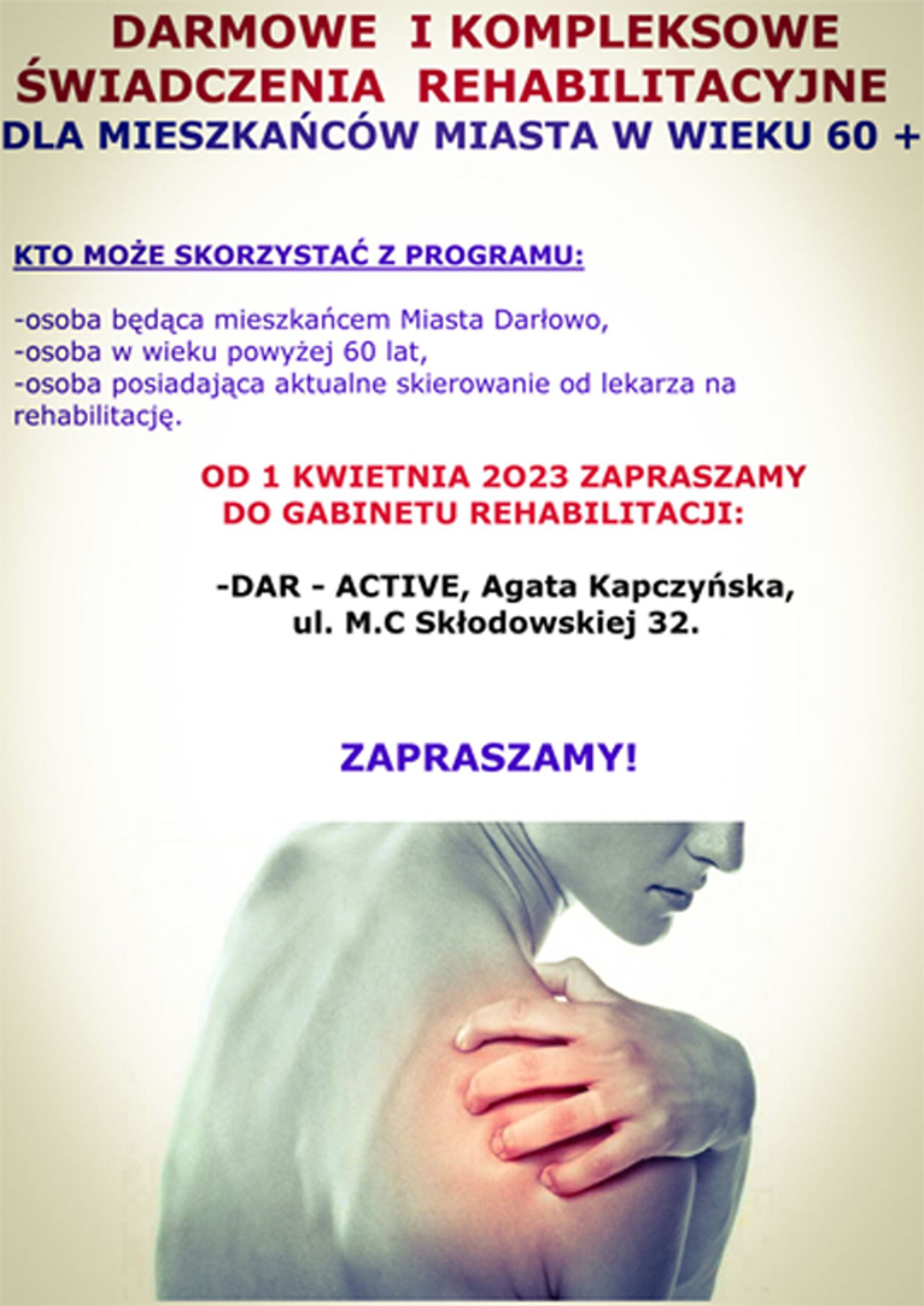 Serdecznie zapraszamy mieszkańców miasta w wieku 60 + do skorzystania z darmowej i kompleksowej rehabilitacji !