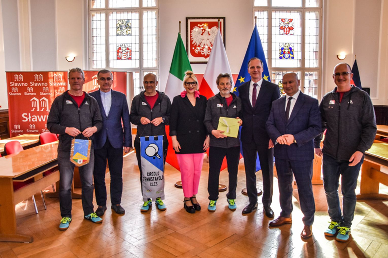 Zawodnicy, w osobach Enrico Panizza, Farbrizio Bertagnolli, Luciano Chilovi i Ivan Zanon w ub. piątek spotkali się z burmistrzem Krzysztofem Frankensteinem w sławieńskim ratuszu, a następnie udali się na wspólny trening z zawodnikami UKS Czarni Pieszcz. Z kolei w sobotę 13 maja 2023r. odbył się Międzynarodowy Turniej Tenisa Stołowego o Puchar Burmistrza Miasta Sławno w hali widowiskowo-sportowej przy SP3. Sędzią głównym zawodów był: Andrzej Ugorski z UKS Czarni Pieszcz. Zwycięzcą turnieju został Paweł Muca w kat. Mężczyzn, zaś w kat. Kobiet wygrała Samanta Muca.