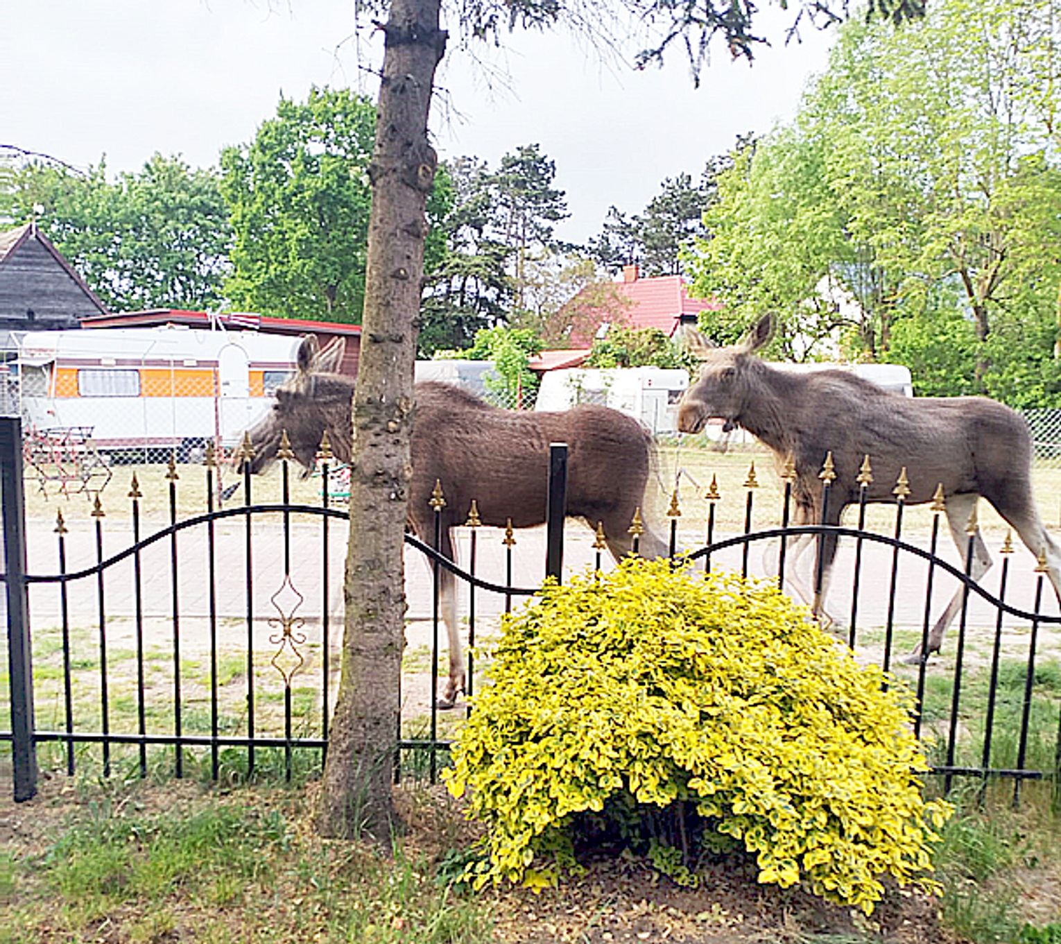 W czwartek, w Jarosławcu pokazały się dwa łosie. Jakby nigdy nic, spacerowały uliczkami miejscowości. Podziwiały domy i ogrody. Gdzieniegdzie przystanęły na dłużej. Coś pojadły, coś podgryzły. Wyraźnie się im podobało. Od mieszkańców wiemy, że na plażę nie poszły. Może to i lepiej. Jakby się spodobało, zostałyby na dłużej... (sim)