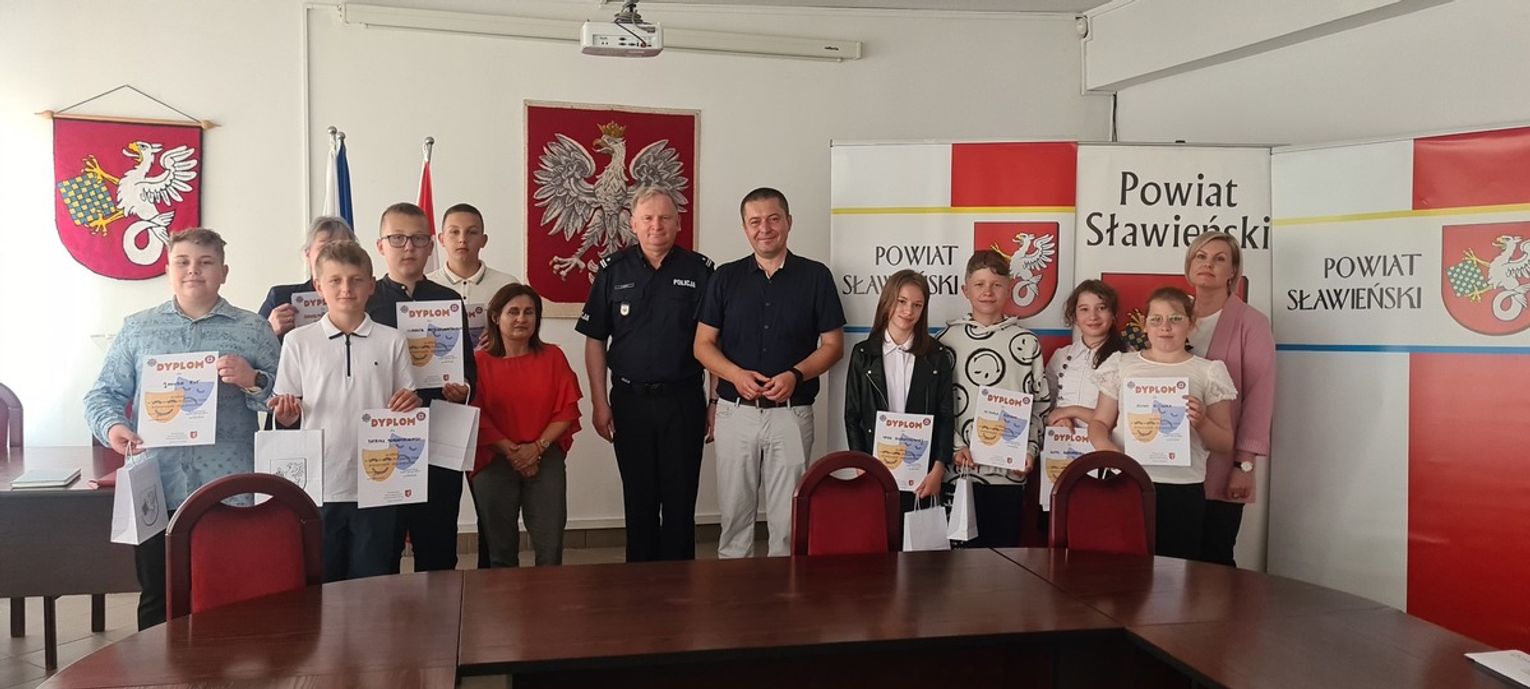 Młodzi artyści oraz ich opiekunowie otrzymali dyplomy i nagrody ufundowane przez Starostwo Powiatowe w Sławnie. Ich wręczenia dokonali Komendant Powiatowy Policji w Sławnie podinsp. Andrzej Kamoda, Wicestarosta Powiatu Sławieńskiego Andrzej Protasewicz i kierownik Oddziału Nadzoru Powiatowej Stacji Sanitarno – Epidemiologicznej w Sławnie Irena Kowalkowska.