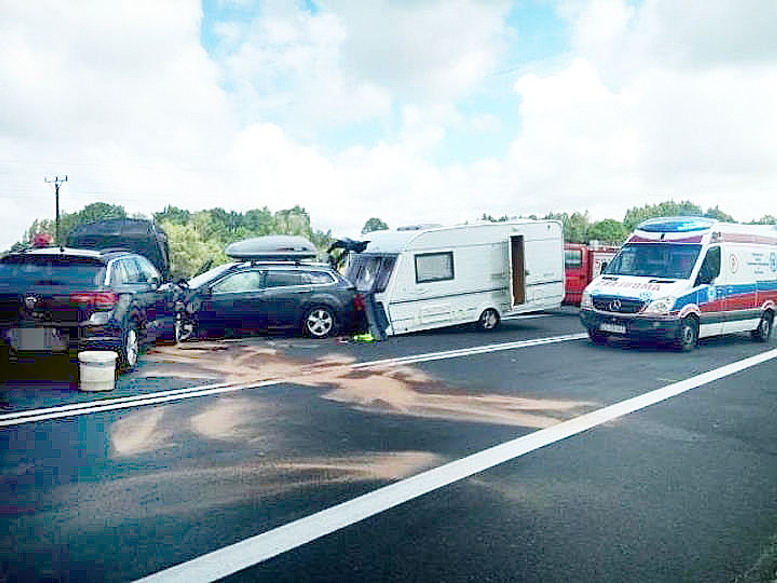 Źle zaczęły się wakacje dla rodziny jadącej na wczasy i kobiety podróżującej krajową szóstką pomiędzy Malechowem a Niemicą. Nie wiadomo kto zawinił, jednak skutki zderzenia Volkswagena T-Rock-a z Hondą ciągnącą przyczepę kempingową są opłakane. Do szpitala śmigłowcem LPR przetransportowano najbardziej poszkodowaną – kierująca Volkswagenem.