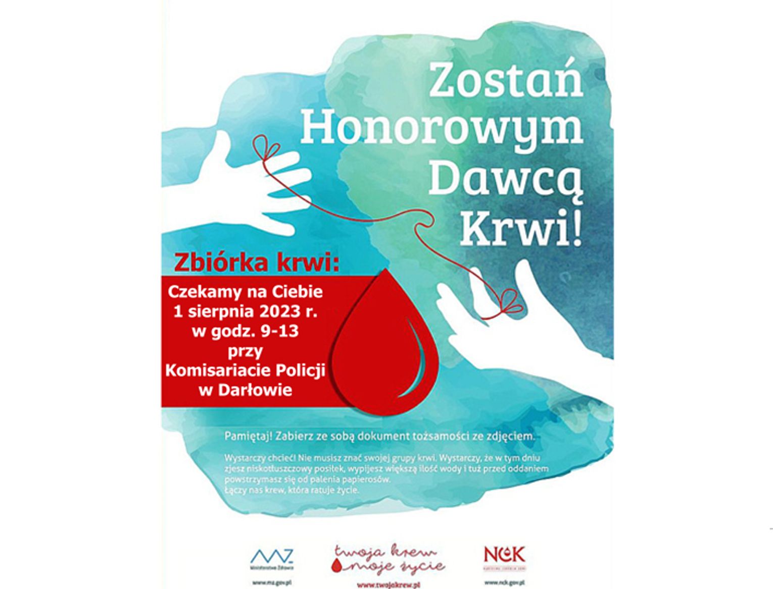 Już jutro (1.08) przed darłowskim Komisariatem Policji, w godzinach od 9 do 13 będzie można oddać krew. Zapraszamy wszystkich chętnych gotowych podzielić się najcenniejszym płynem potrzebnym do ratowania życia.