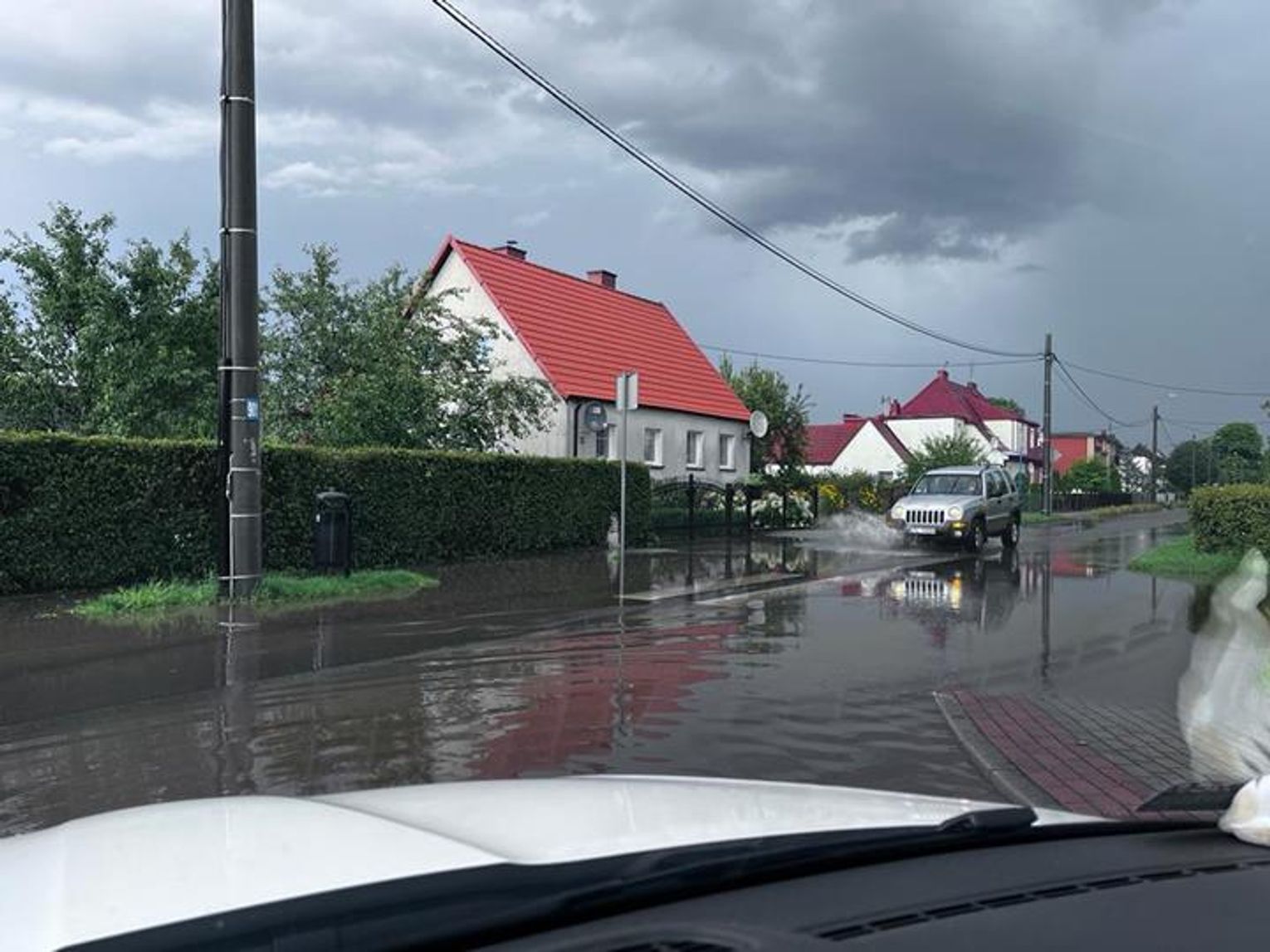 W ciągu kilkunastu minut czwartkowego popołudnia na Sławno spadło wiele litrów wody. Gwałtowny deszcz utrudnił poruszanie się nie tylko pieszym, ale także zmotoryzowanym m.in. podróżującym ulicą Kossaka. Ci w pojazdach jakoś sobie poradzili, piesi nie mieli szans na przekroczenie tej ulicy suchą nogą...