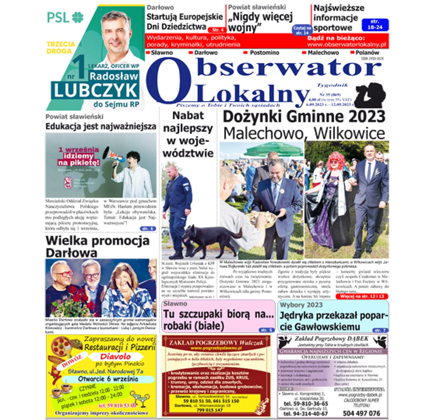 A w nim najświeższe informacje lokalne z terenu powiatu sławieńskiego i gminy Polanów.