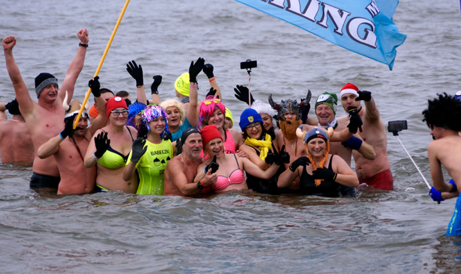 Potem rzesza Morsów przemaszerowała na plaże, gdzie po kilkunastominutowej rozgrzewce weszli do morza.