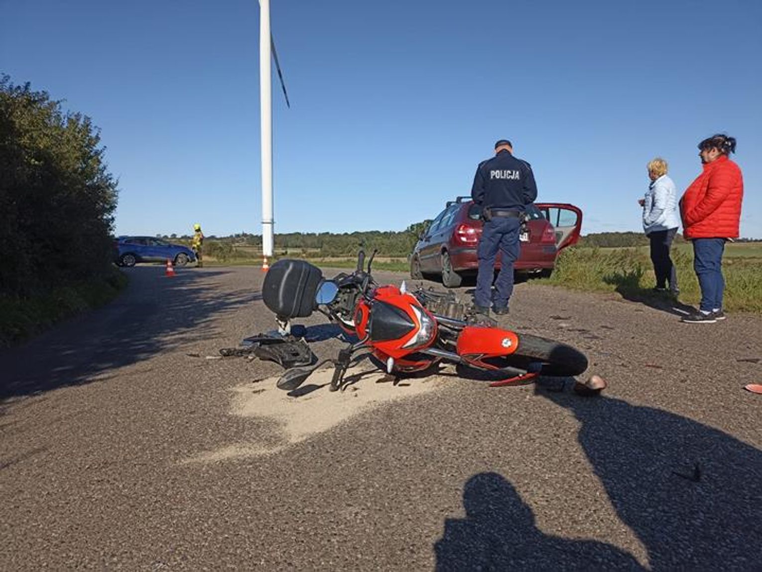 Na badania do szpitala trafił motocyklista, który zderzył się z samochodem osobowym na drodze z Rusinowa do Barzowic. Osobówką jechały trzy osoby, ale nikomu nic się nie stało.