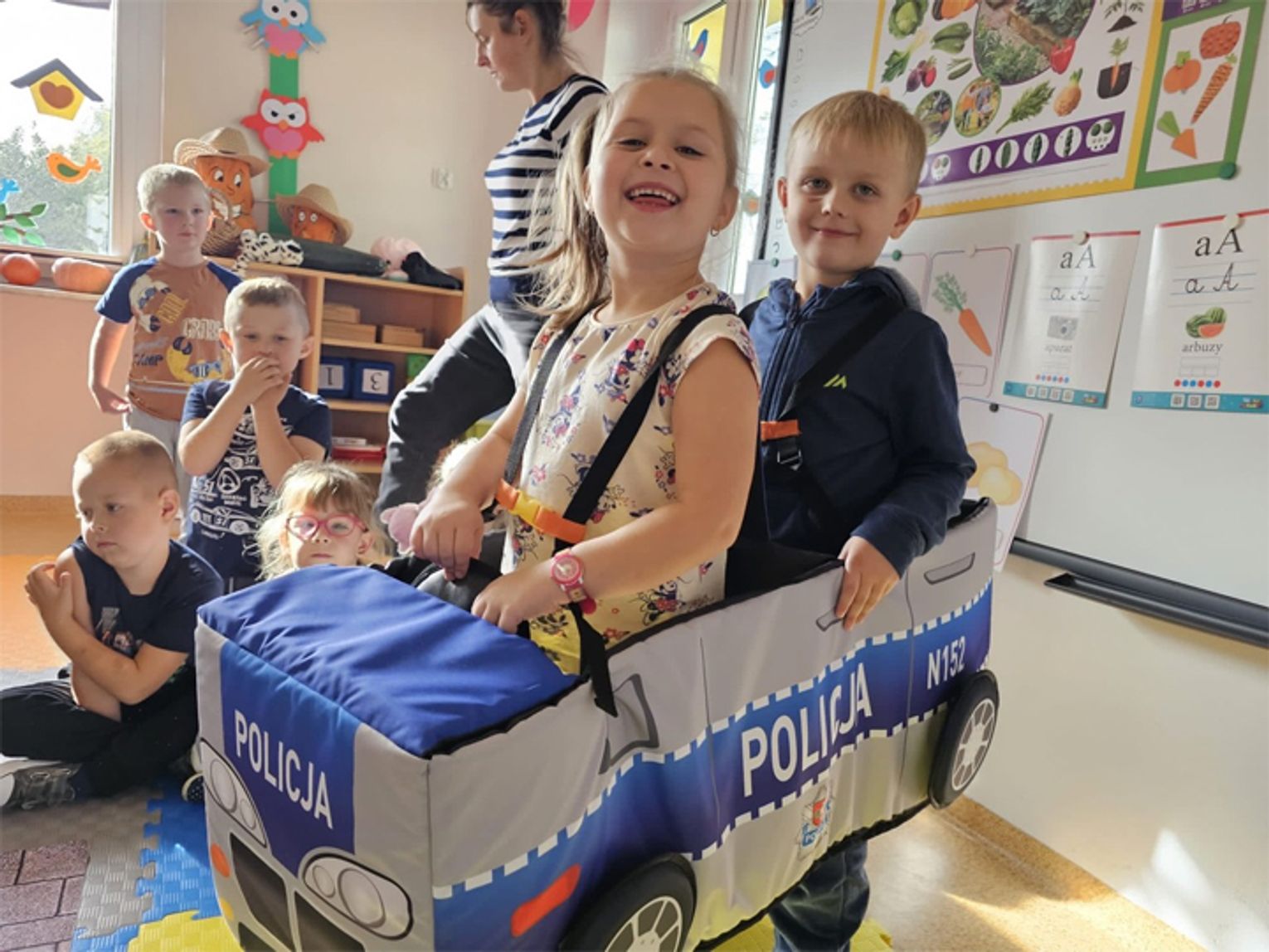 Na koniec spotkania dzieci miały możliwość utrwalenia podstawowych zasad bezpiecznego poruszania się po drodze dzięki zabawie z zestawem edukacyjnym „Autochodzik”, który wzbudził największe emocje wśród najmłodszych