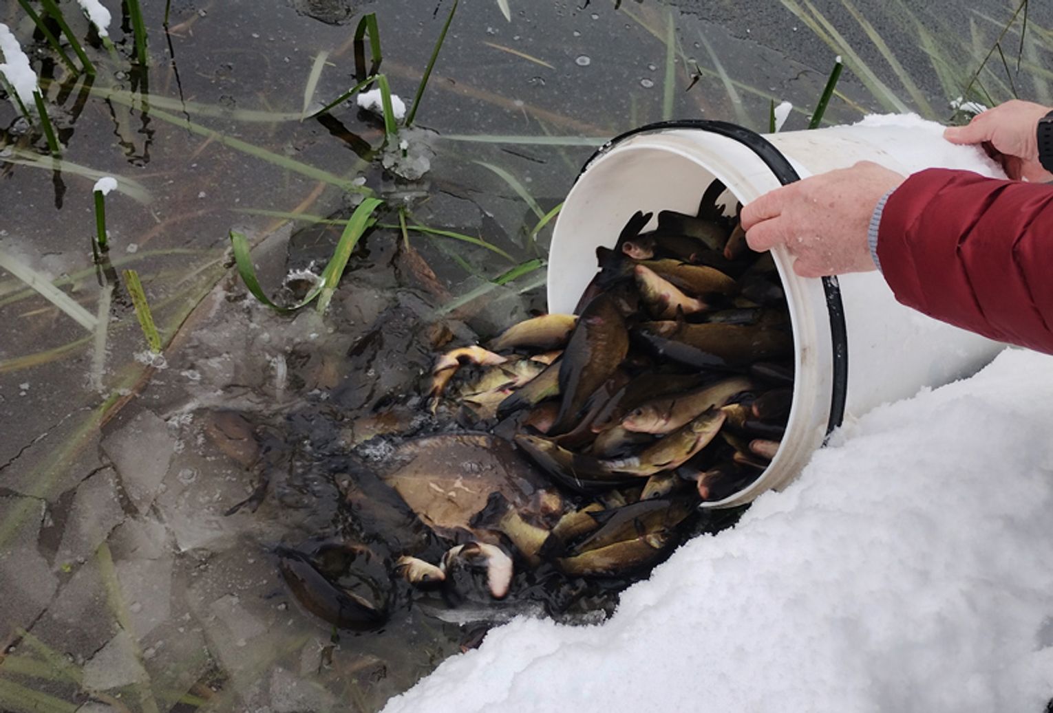 W dniu 04 grudnia 2023 r. na jeziorze Ostrowiec, w obecności Ichtiologa PZW w Koszalinie Łukasza Dorobisz oraz Prezesa Zarządu Koła PZW Niemica Mirosława Gancarz i Przewodniczącego Komisji Rewizyjnej Ryszarda Bobis, dokonano zaległego zarybienia uzupełniającego kroczkiem lina w ilości 81 kg oraz kroczkiem karpia w ilości 10 kg.
